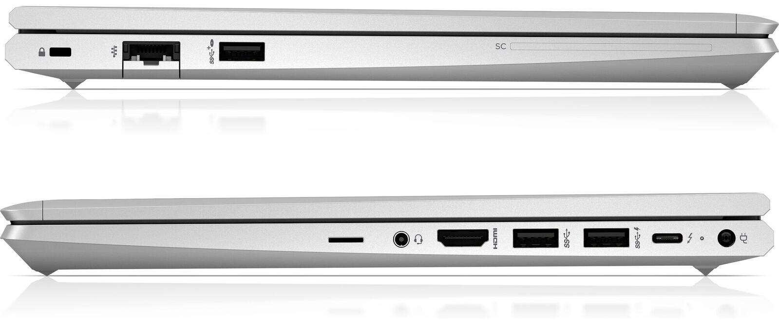 - Thunderbolt 4 / USB-C, USB-A, HDMI, Gigabit LAN, WLAN, Bluetooth