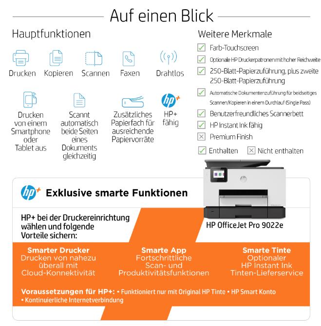 HP OfficeJet Pro 9022e Tintenstrahl-Multifunktionsgerät A4, 4in1, Drucker, Scanner, Kopierer, Fax, WLAN, HP Instant Ink