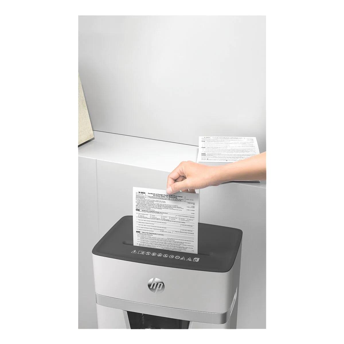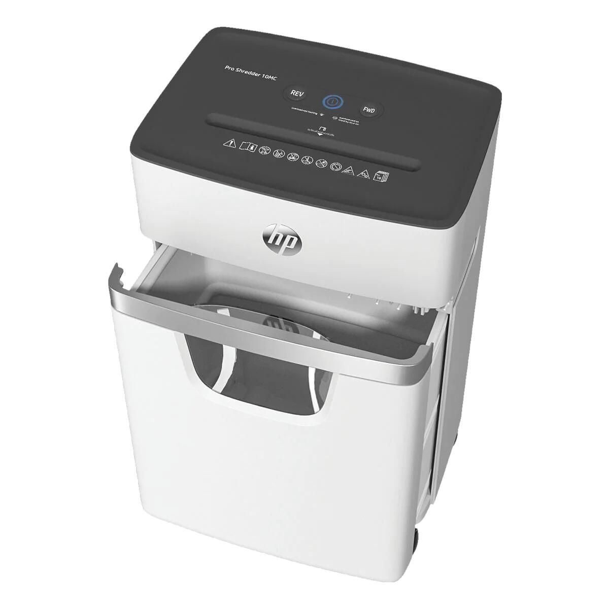 HP OneShred 10MC Aktenvernichter Sicherheitsstufe 5, Mikroschnitt 2x15mm, bis 10 Blatt 10g/m², 55dB