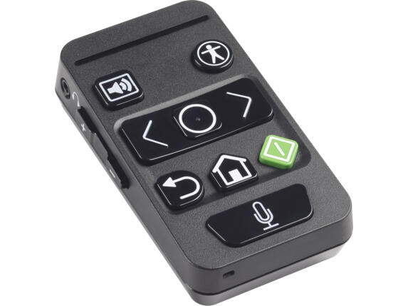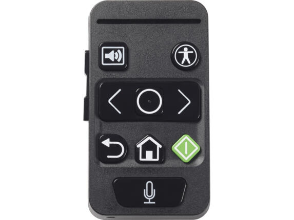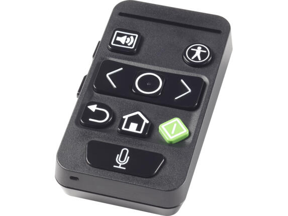 Intuitiv geformte Tasten machen die Navigation im HP Accessibility Assistant für sehbehinderte Mitarbeiter einfach. Taktil erfassbare Pfeile, Lautstärkeregler, Auswahl-, Home- und Zurück-Optionen machen dieses Zubehör einfach zu bedienen. Greifen Sie auf Funktionen der HP Accessibility App entweder per Tastendruck oder mit einem einfachen Sprachbefehl zu.