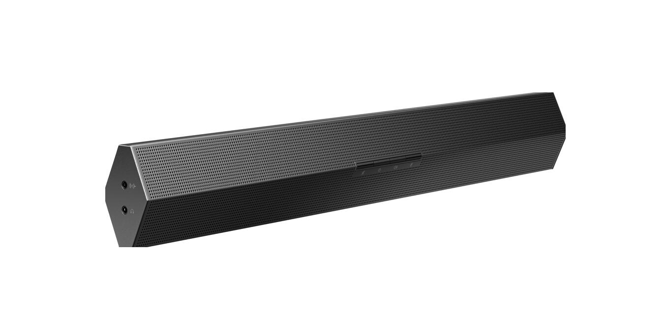 Dank der zwei Stereolautsprecher mit großem Frequenzbereich hören Sie auch die kleinsten Details mit sattem, immersivem Klang. Über die zusätzlichen Eingänge können Sie eine weitere Audioquelle anschließen, um Musik oder Medien an Ihrem Schreibtisch wiederzugeben oder für mehr Privatsphäre Ihre kabelgebundenen Kopfhörer zu nutzen.
