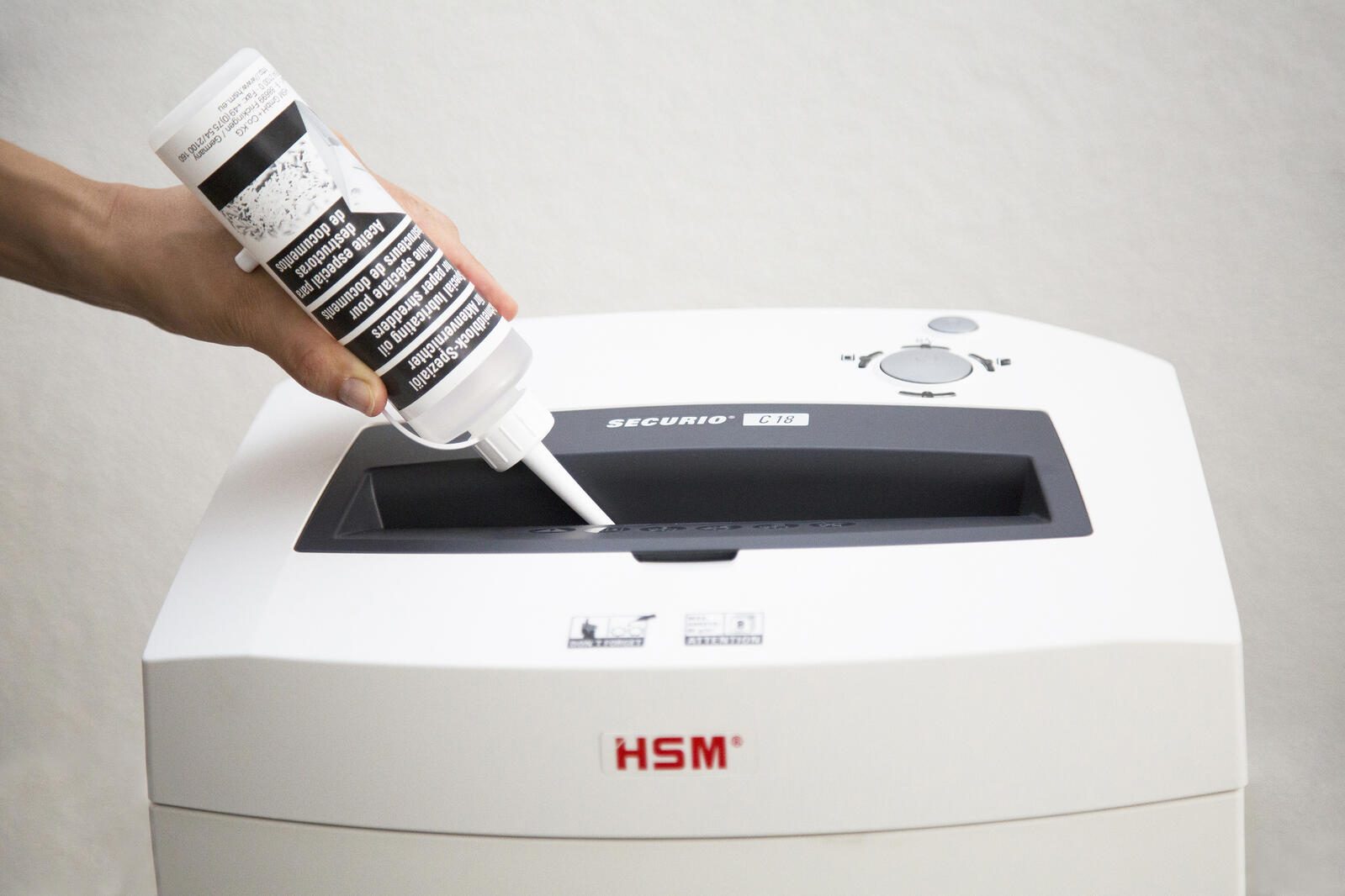 Durch den regelmäßigen Einsatz von original HSM Schneidblock-Spezialöl wird eine maximale Lebensdauer und eine konstant hohe Schnittleistung des Aktenvernichters gewährleistet. Das Öl ist dabei biologisch abbaubar.
