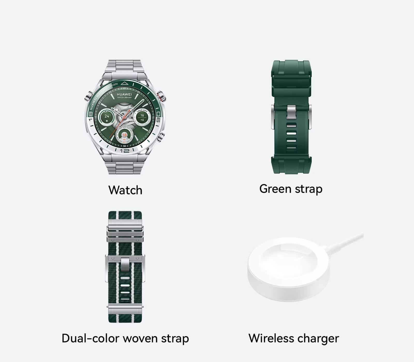Huawei WATCH Ultimate 48,5mm - Stahlfarbe/Grün Titan-Armband (inkl. zweifarbig gewebtem Armband und grünem HNBR-Armband)