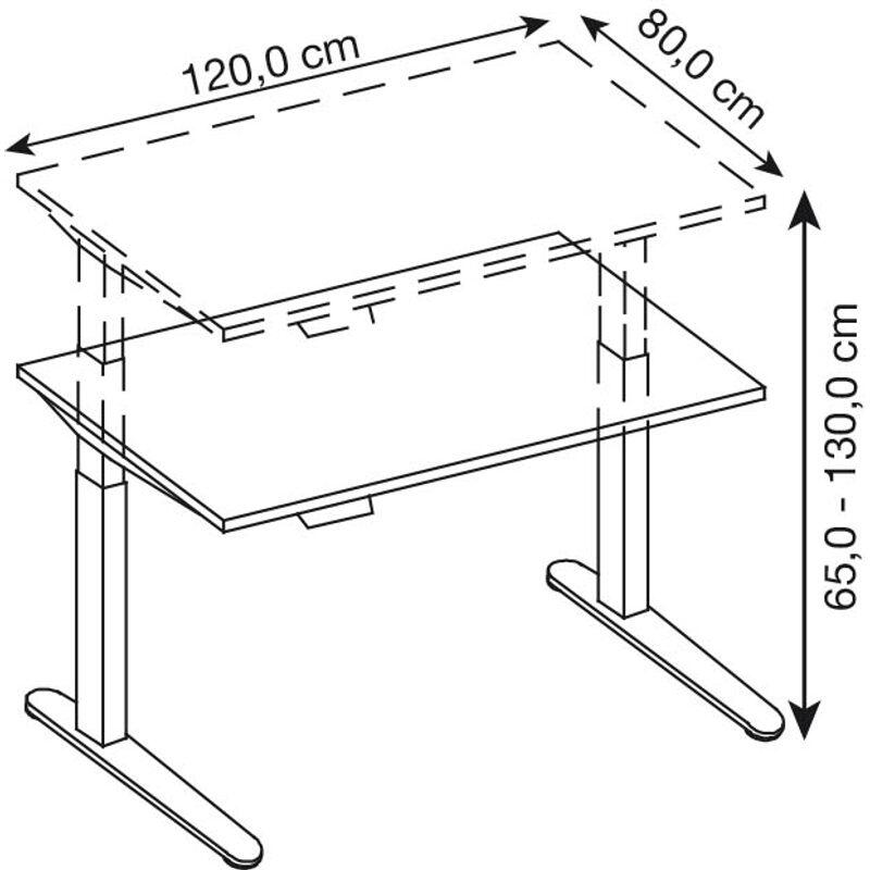 - Besonderheiten: Traversenfrei, 2-stufig, Stahlrahmen unter der Tischplatte aus 4,0 x 2,0 cm Rechteckrohr, abklappbare Kabelwanne