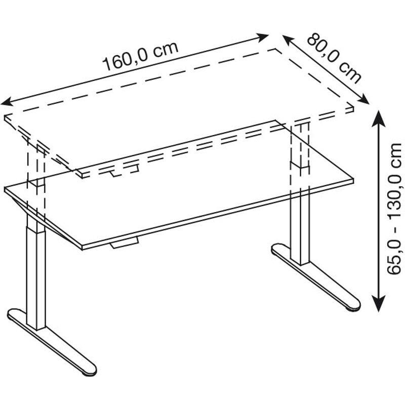 - Besonderheiten: Traversenfrei, 2-stufig, Stahlrahmen unter der Tischplatte aus 4,0 x 2,0 cm Rechteckrohr, abklappbare Kabelwanne