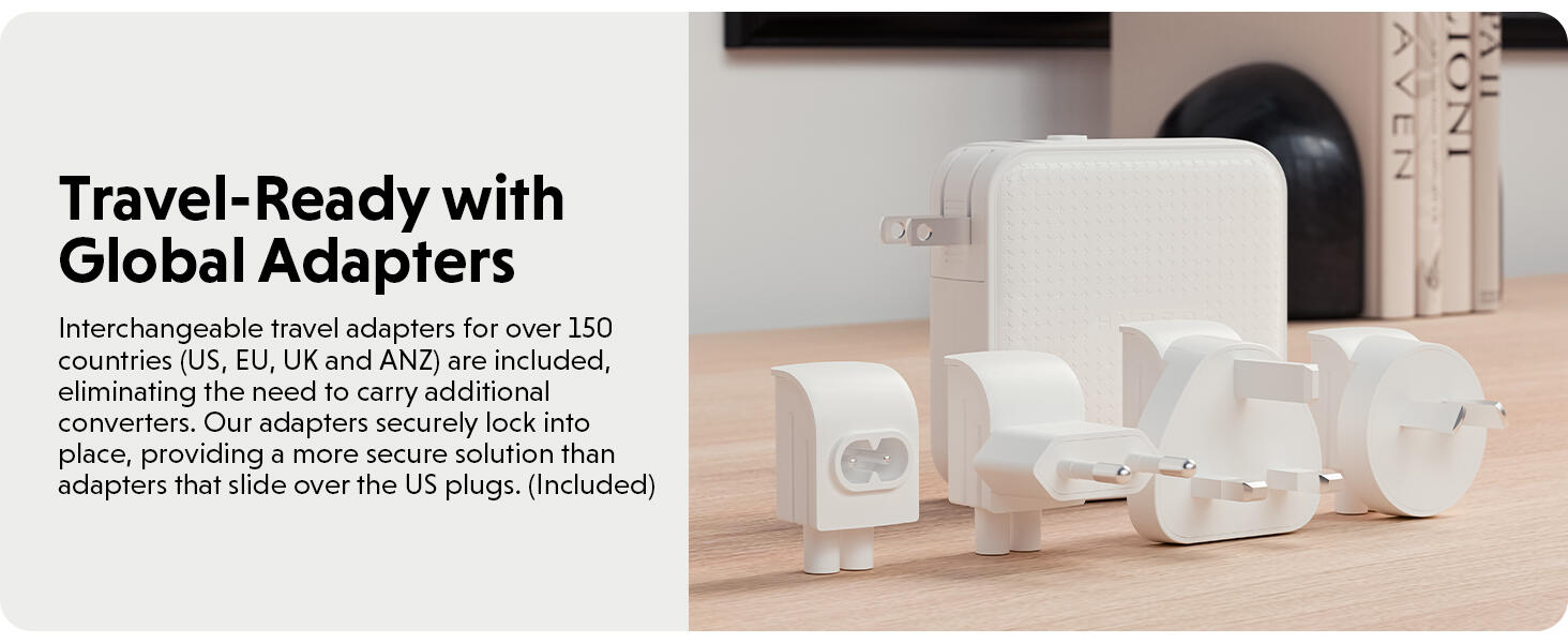 - Alles, was Sie für weltweite Reisen benötigen, dank des kompakten Designs und der mitgelieferten Reiseadapter