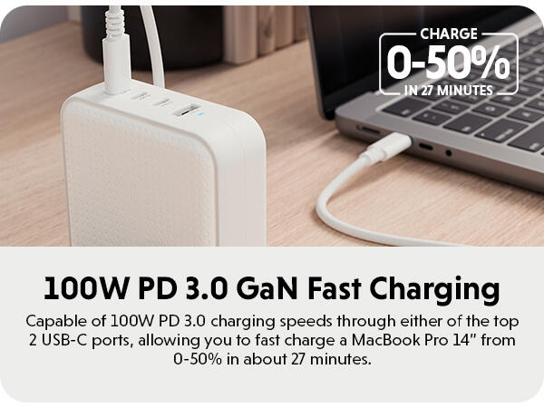 - Kompaktes 4-Port-100-W-GaN-Reiseladegerät versorgt professionelle Laptops, Tablets und Telefone gleichzeitig mit Strom