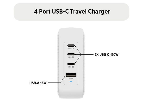 - Kann mit seinen drei USB-C-Anschlüssen und einem USB-A-Anschluss bis zu 4 Geräte gleichzeitig mit Strom versorgen