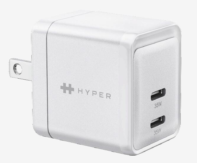 Die ultimative Ladelösung für tragbare Stromversorgung das HyperJucie 35 W GaN Ladegerät mit zwei USB-C-Anschlüssen. Mit einer maximalen Ausgangsleistung von 35 W ist dieses Ladegerät in der Lage, Ihr iPhone 15 Pro Max oder Ihr MacBook Air oder iPad schnell zu laden. Es ist eine vielseitige und tragbare Ladelösung, die zwei Geräte gleichzeitig laden kann.