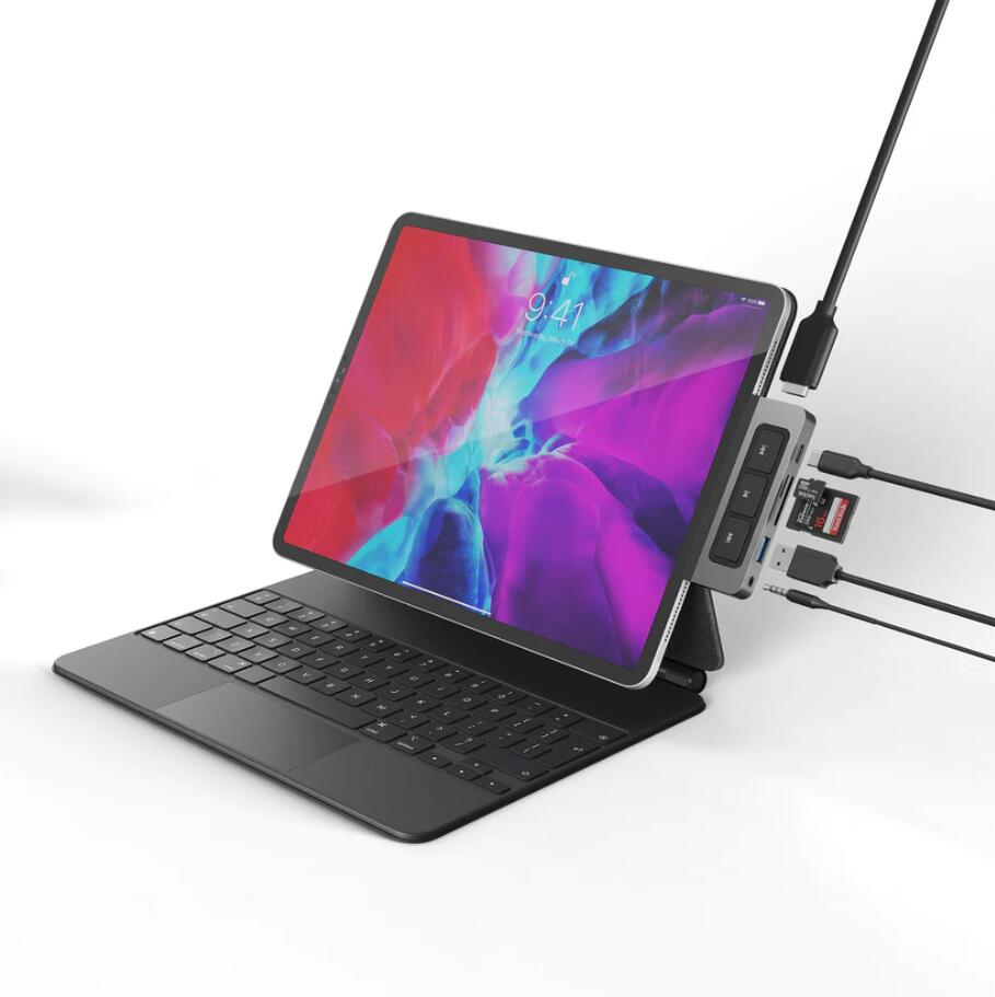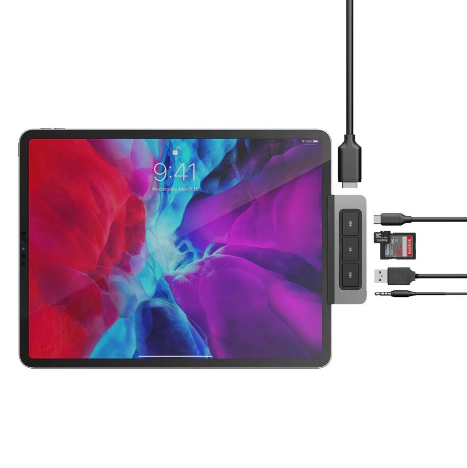 Der 6-in-1 USB-C Media Hub für das iPad ist der weltweit erste formschlüssige Hub mit 6 wichtigen Anschlüssen und Medientasten, mit denen Sie mehr Geräte anschließen und Filme, Songs oder Podcasts nahtlos abspielen, pausieren, vor- oder zurückspulen können, ohne Ihren Arbeitsablauf zu unterbrechen. Kompatibel mit USB-C iPad Pro, Air oder mini.
