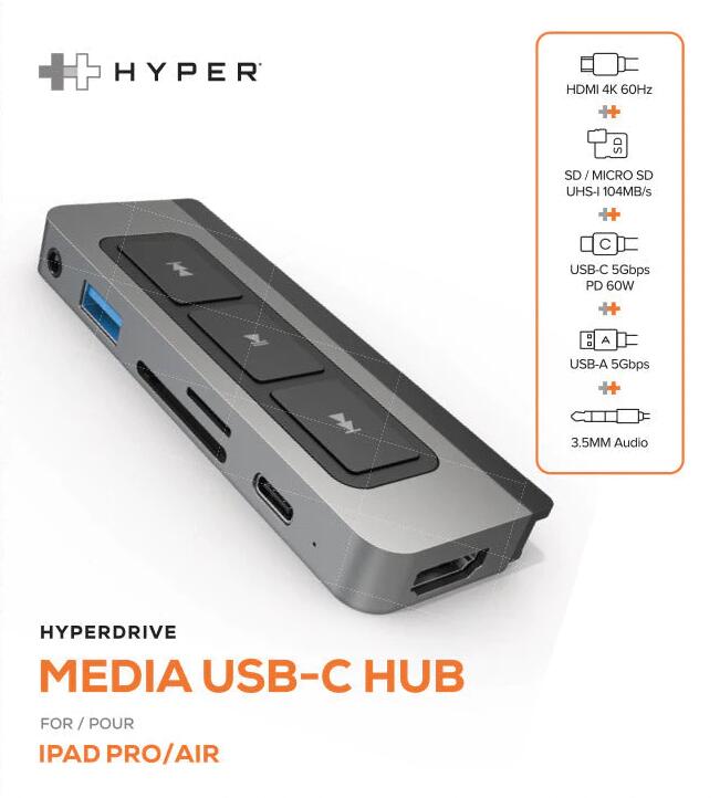 Hyper® HyperDrive Media 6-in-1 USB-C Hub for iPad Pro/Air