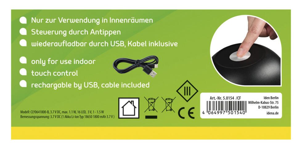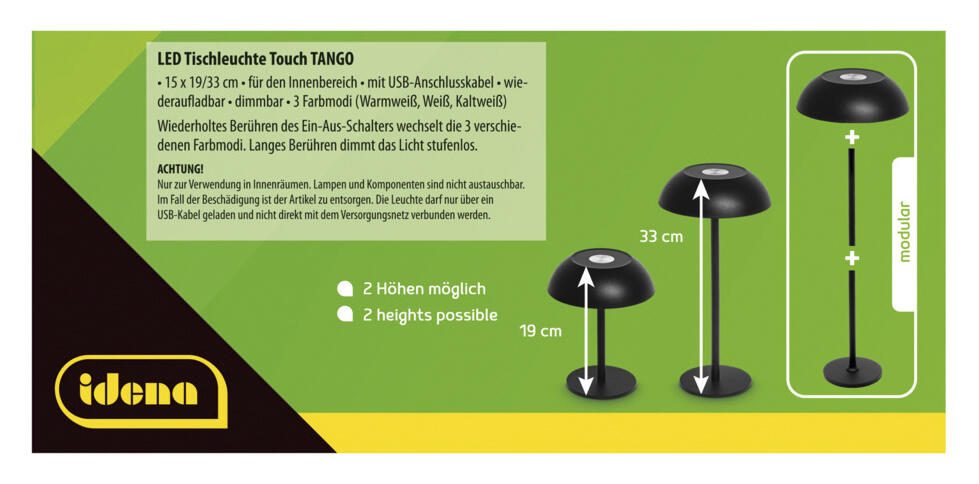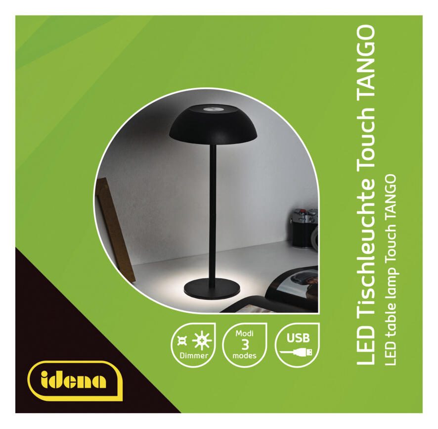 Die Idena LED Tischleuchte LED Tango schwarz ist eine vielseitige Leuchte, die sich ideal für den Einsatz auf dem Schreibtisch oder als zusätzliche Lichtquelle im Wohnbereich eignet. Sie überzeugt durch ihre flexible Stromversorgung über USB, sodass Du sie problemlos an verschiedenen Geräten oder Netzteilen anschließen kannst. Das integrierte LED-Leuchtmittel ist bereits enthalten und sorgt für eine langlebige und energieeffiziente Beleuchtung.