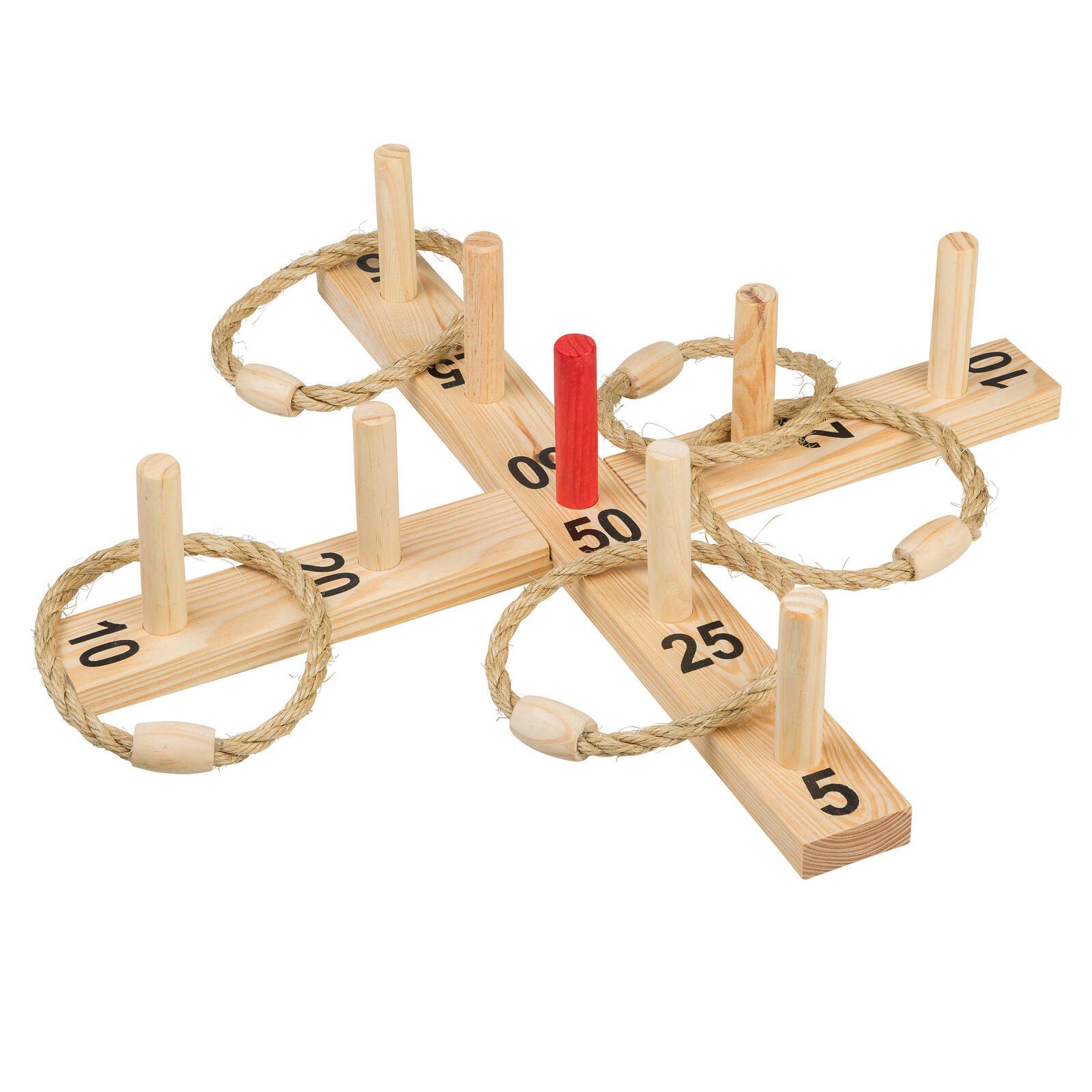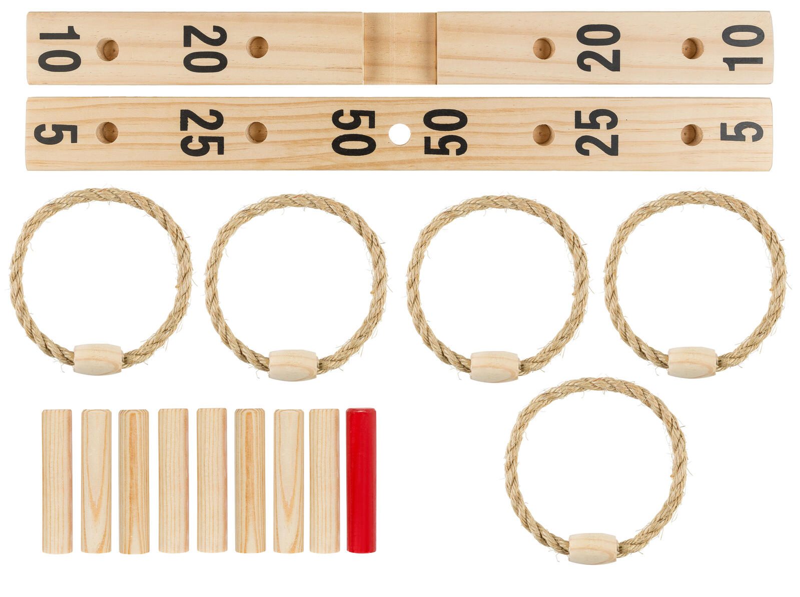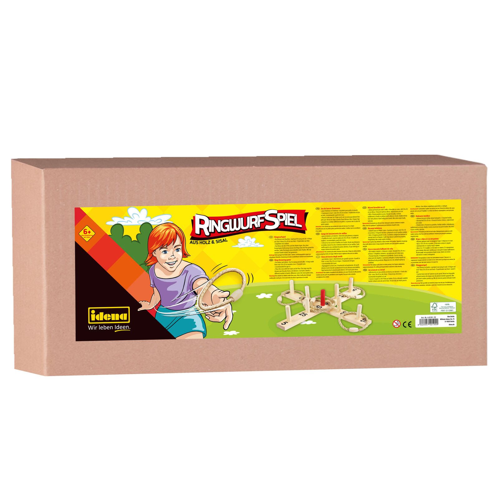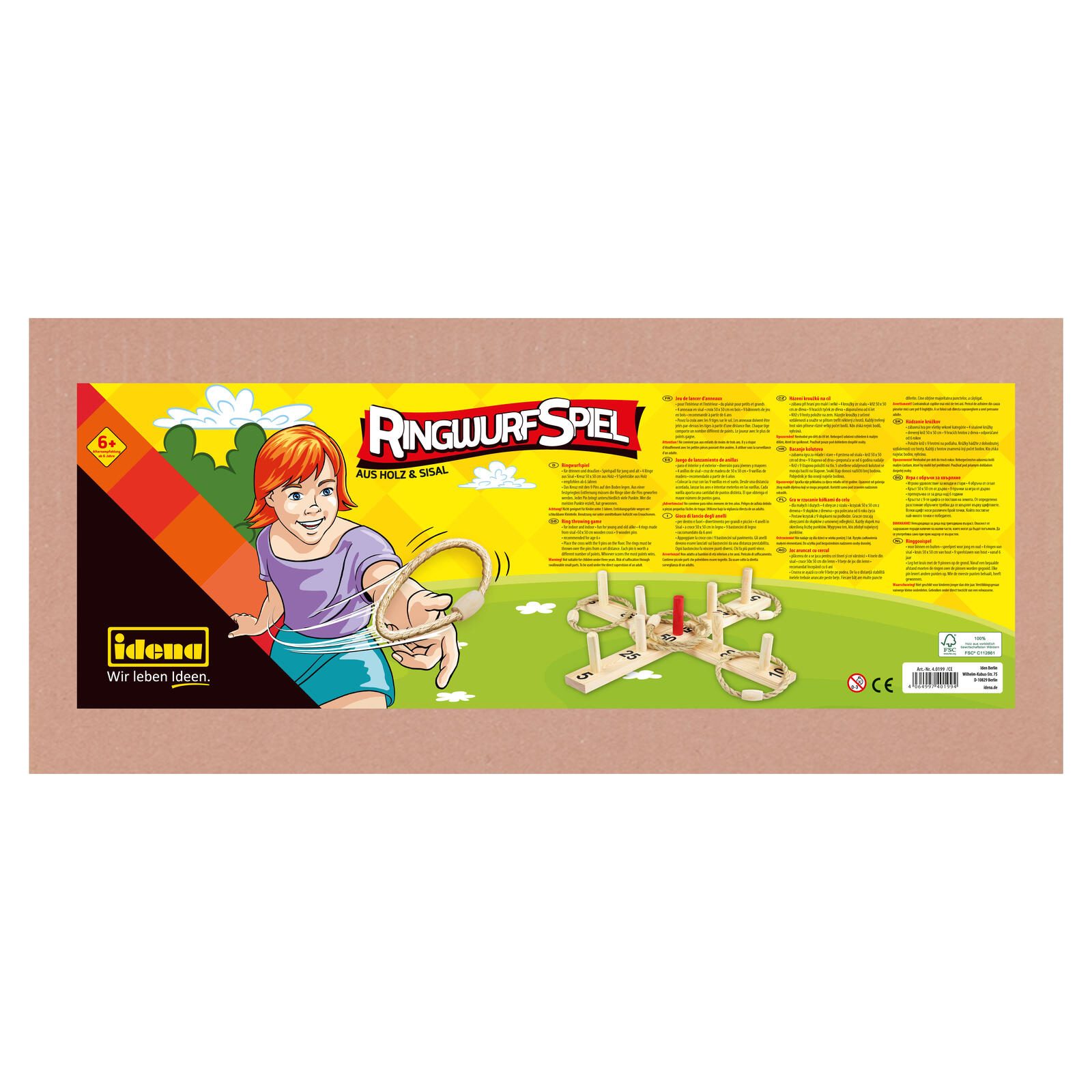 Im Lieferumfang des Idena Wurfspiels sind ein stabiler Kreuzständer, neun Spielstäbe und vier Ringe enthalten. Diese hochwertigen Materialien sorgen dafür, dass das Spiel langlebig und robust ist, sodass es viele aufregende Spielstunden übersteht. Das einfache Design ermöglicht es den Spielern, schnell in das Spiel einzusteigen und ihre Wurfkünste zu verbessern.