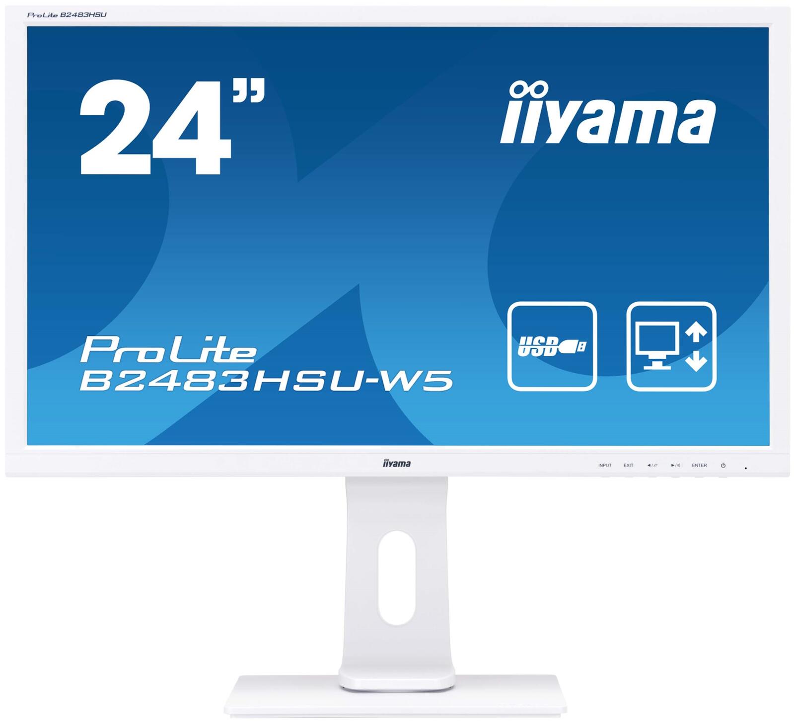 Abgekündigt iiyama ProLite B2483HSU-W5 Monitor 61 cm (24 Zoll) Full-HD, TN-Panel, 1ms, HDMI, DisplayPort, VGA, USB Hub
