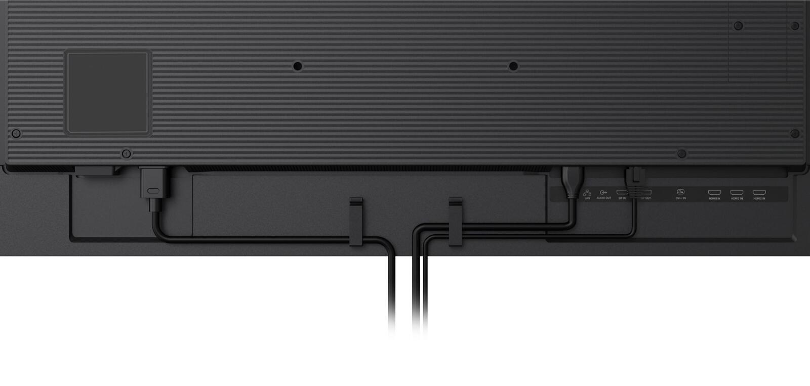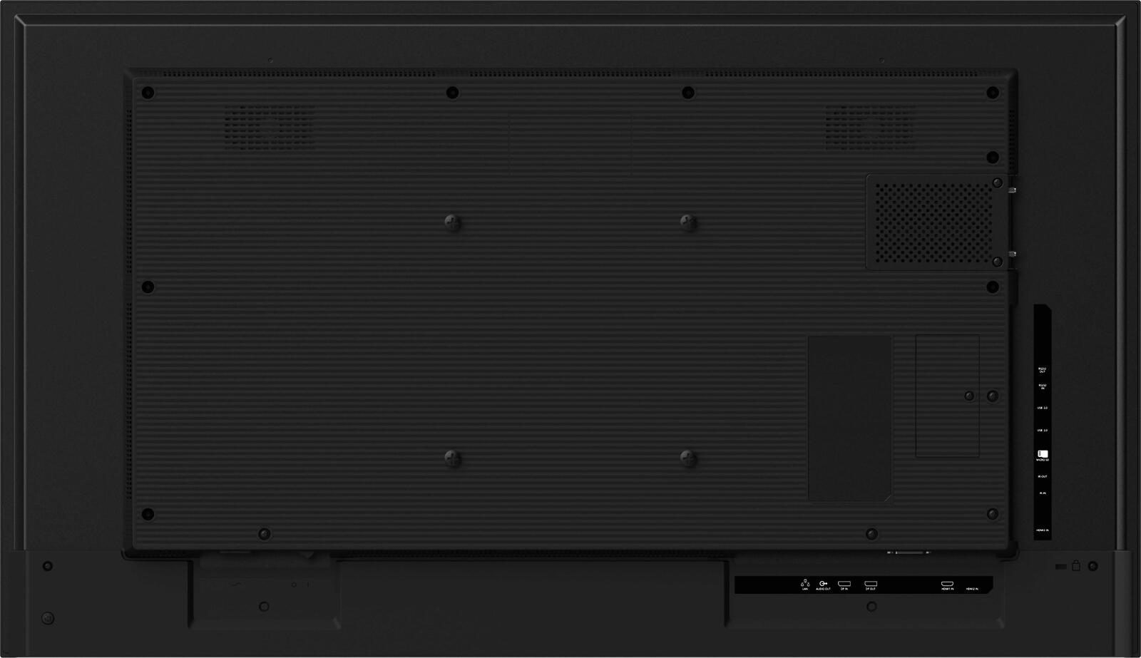 Mit der VESA-Halterung 400 x 400 mm lässt sich das Display bequem an verschiedenen Halterungen oder Wandmontagen befestigen, was eine flexible Installation ermöglicht. Die schwarze Gehäusefarbe verleiht dem Display ein elegantes und professionelles Erscheinungsbild, das sich harmonisch in jede Umgebung einfügt.