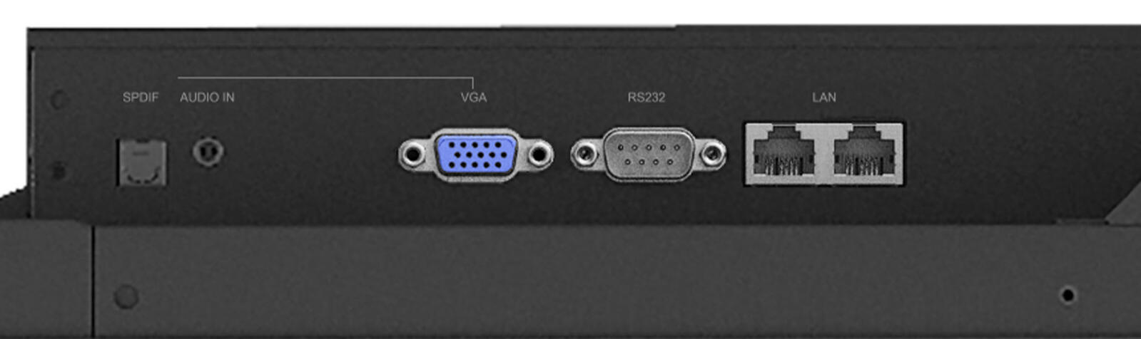 3 x HDMI-Eingang USB-C mit 65 W Spannungsversorgung VGA-Eingang 2 x LAN RS-232C-Eingang Audio-Eingang Audio-Ausgabe SPDIF-Ausgang Fernsteuerung 4 x USB 3.0 USB-C 3.1 USB 2.0