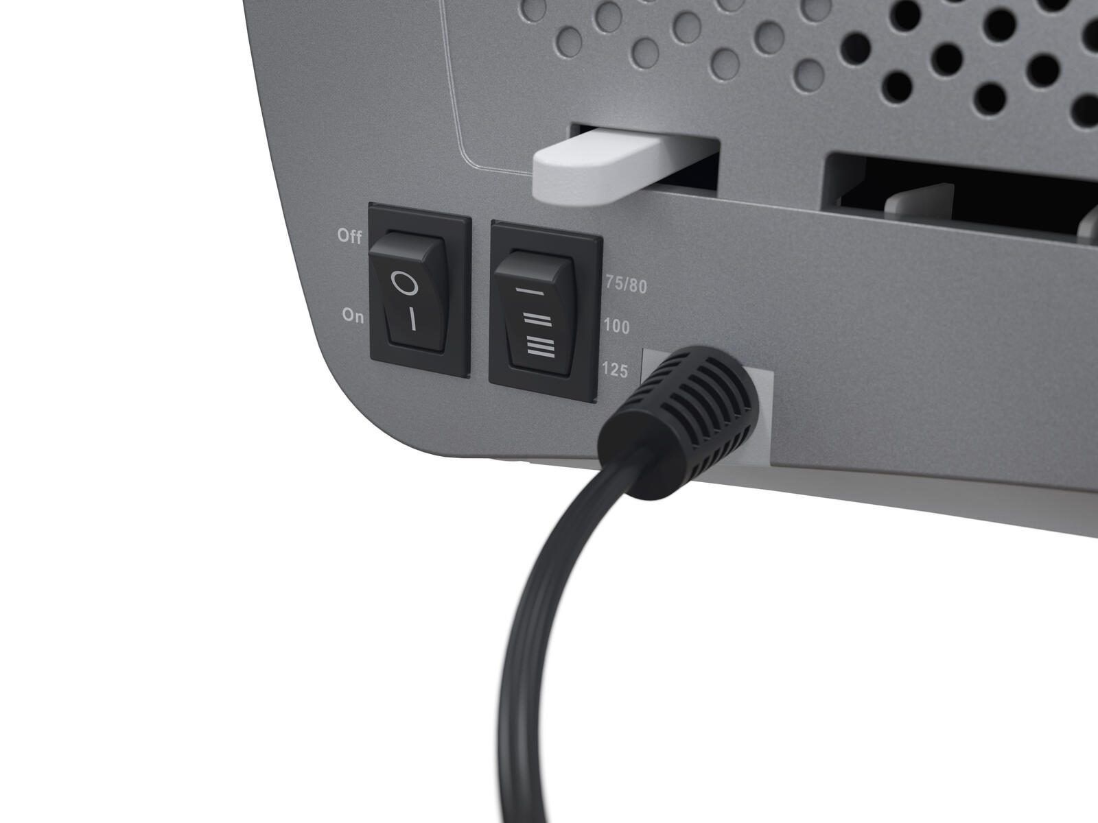 Das Laminiergerät verarbeitet Folien mit einer Stärke von bis zu 125 Mikron pro Seite, was dir ermöglicht, sowohl dünnere als auch dickere Dokumente sicher und effektiv zu laminieren. Mit einer Leistungsaufnahme von 400 W bietet das Gerät eine starke Leistung, die dir hilft, deine Laminierungsprojekte schnell und effizient abzuschließen.