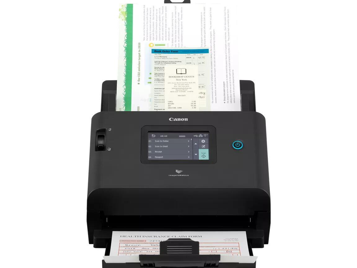 Einfache HandhabungMüheloses Scannen mit Webbrowser und direktem Auftragsscan über die integrierte Canon Webanwendung sowie bequemes treiberloses Scannen, das Zeit und Mühe spart und keine Verbindung zu einem Computer erfordert. Scannen an verschiedene ZieleÜber das große Farb-LCD-Touchpanel können Sie Dokumente ganz einfach vom Scanner an vordefinierte Speicherorte senden. Senden Sie Daten direkt an freigegebene Ordner, E-Mail, FTP, FTPS, SFTPS und Drucker, ohne einen zusätzlichen PC oder Software zu benötigen, oder verwenden Sie die Scan-to-Mail-Funktion, um gescannte Daten direkt an Teams oder Slack zu senden. |