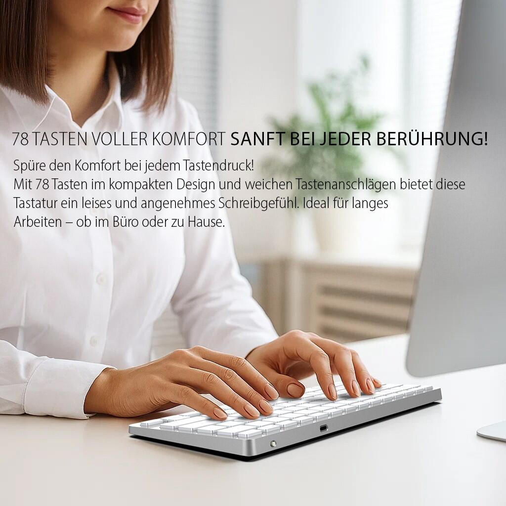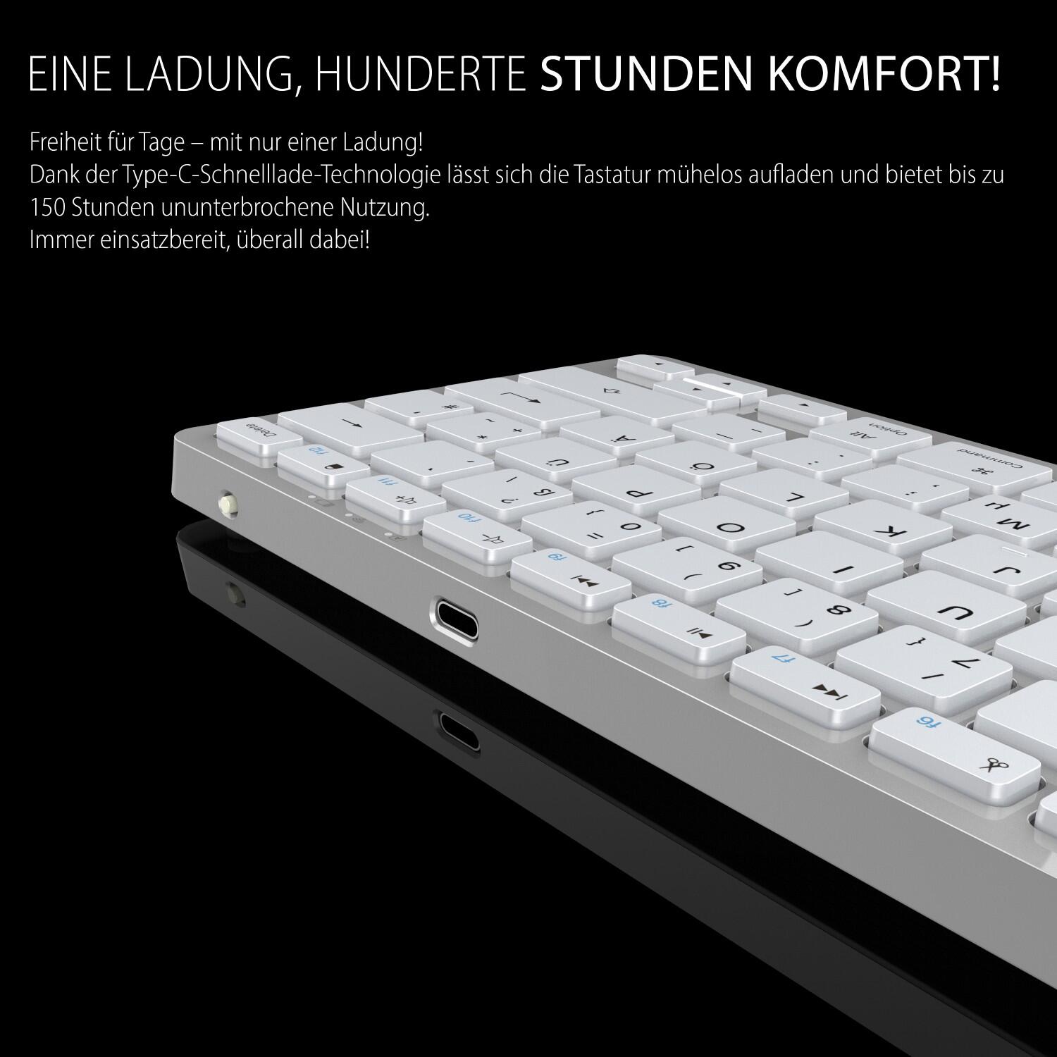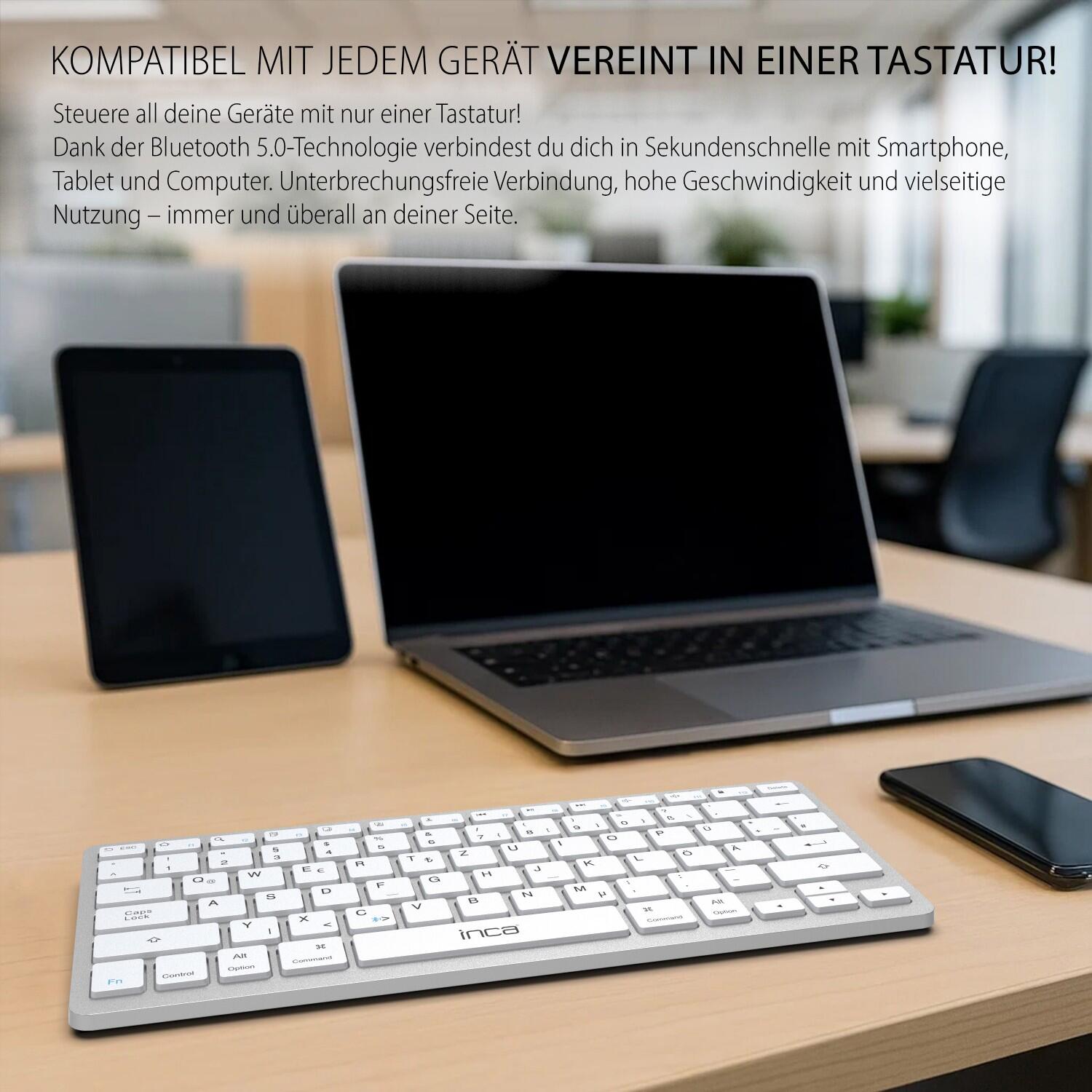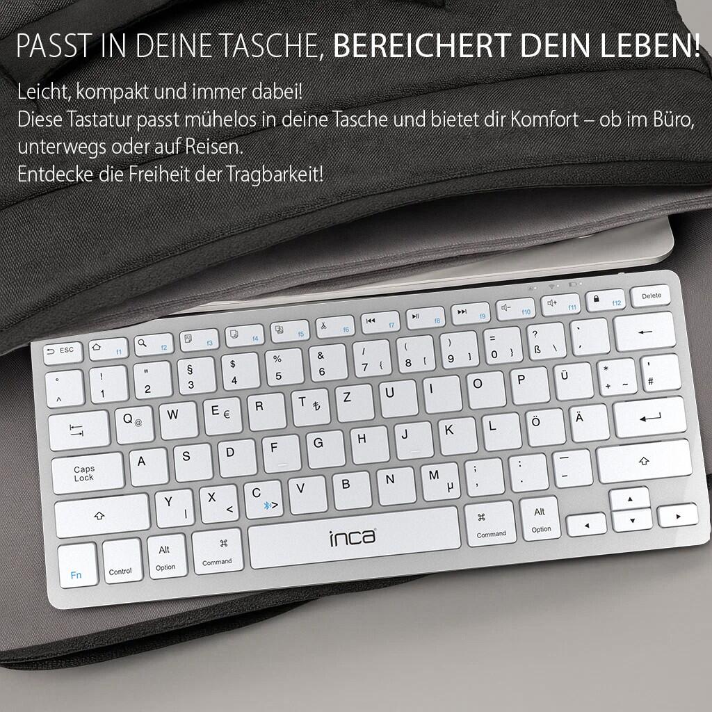 INCA IBK-565BT kabellose Tastatur - QWERTZ DE - grau Bluetooth, Wiederaufladbar
