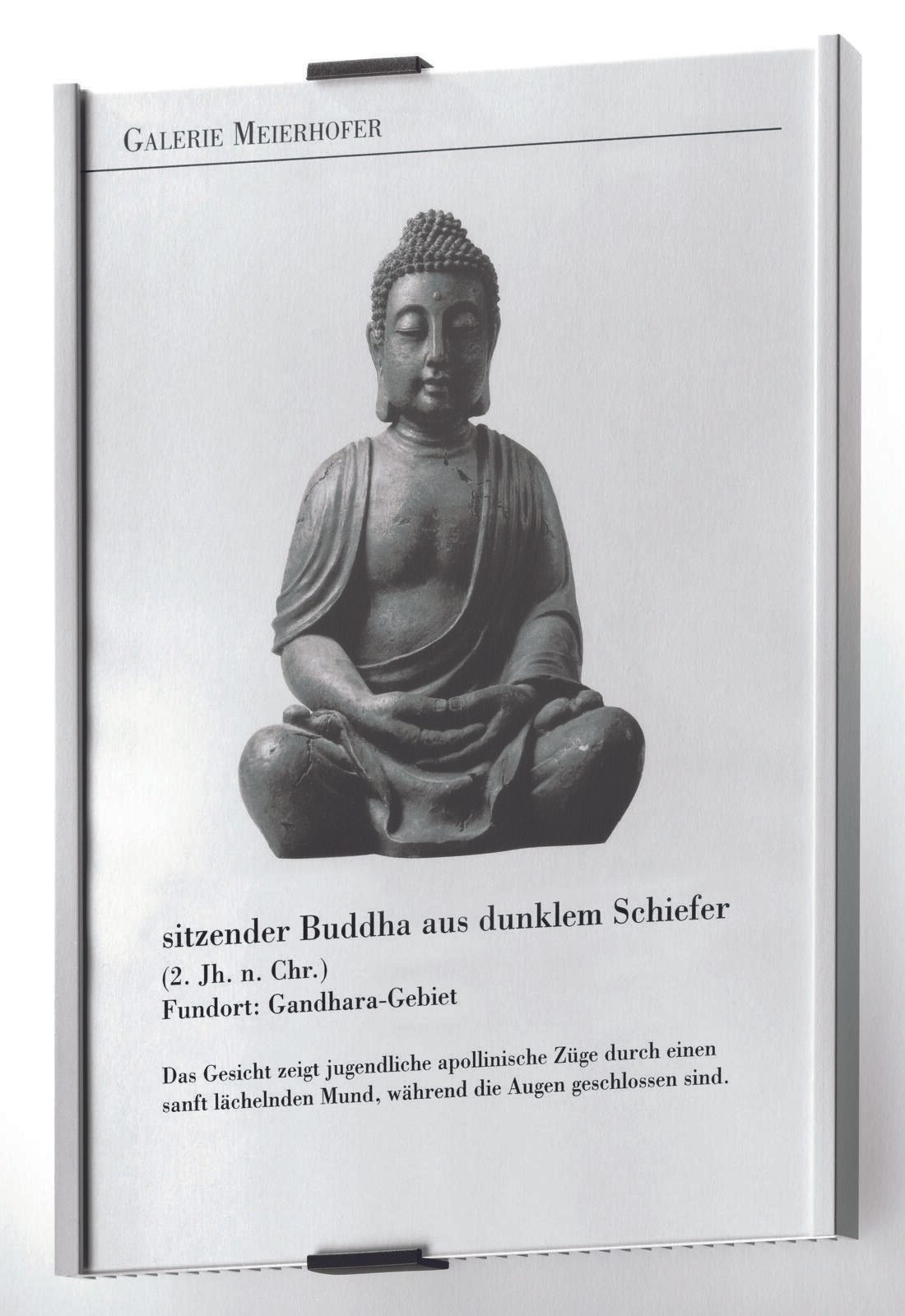Das DURABLE Türschild in der Größe 21,0 x 29,7 cm bietet eine elegante und funktionale Lösung zur Beschriftung von Türen und Räumen. Hergestellt aus robustem Metall und in einem ansprechenden Silberton gehalten, fügt sich dieses Türschild nahtlos in verschiedene Umgebungen ein, sei es im Büro, im Empfangsbereich oder in anderen gewerblichen Räumlichkeiten. Mit einem Rahmen aus Aluminium ist dieses Schild nicht nur stabil, sondern auch leicht zu montieren. Es kann sowohl an die Wand geklebt als auch angeschraubt werden, was Ihnen Flexibilität bei der Installation bietet. Die Wandmontagefähigkeit sorgt dafür, dass das Schild sicher und dauerhaft an seinem Platz bleibt. Das selbstklebende Design ermöglicht eine einfache Anbringung, ohne dass zusätzliches Werkzeug erforderlich ist. Dieses praktische Merkmal spart Zeit und Aufwand, besonders bei der Einrichtung neuer Büros oder bei Umzügen. Zudem ist das Schild sowohl im Hochformat als auch im Querformat einsetzbar, was Ihnen die Möglichkeit gibt, die Anordnung entsprechend Ihren Bedürfnissen anzupassen. Die Maße von 21,0 x 29,7 cm entsprechen dem DIN A4 Format, was es ideal für die Verwendung von Standarddruckvorlagen macht. So können Sie Ihre Informationen klar und professionell präsentieren. Egal, ob Sie ein Schild für ein Büro, einen Besprechungsraum oder einen Empfang benötigen, das DURABLE Türschild ist eine ausgezeichnete Wahl, die sowohl Funktionalität als auch Ästhetik vereint. Profitieren Sie von der hochwertigen Verarbeitung und der vielseitigen Einsatzmöglichkeiten dieses Türschilds, das nicht nur informativ, sondern auch stilvoll ist.Technische Daten