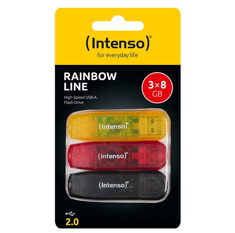 Intenso Rainbow Line 3x 8 GB - schwarz, gelb und rot