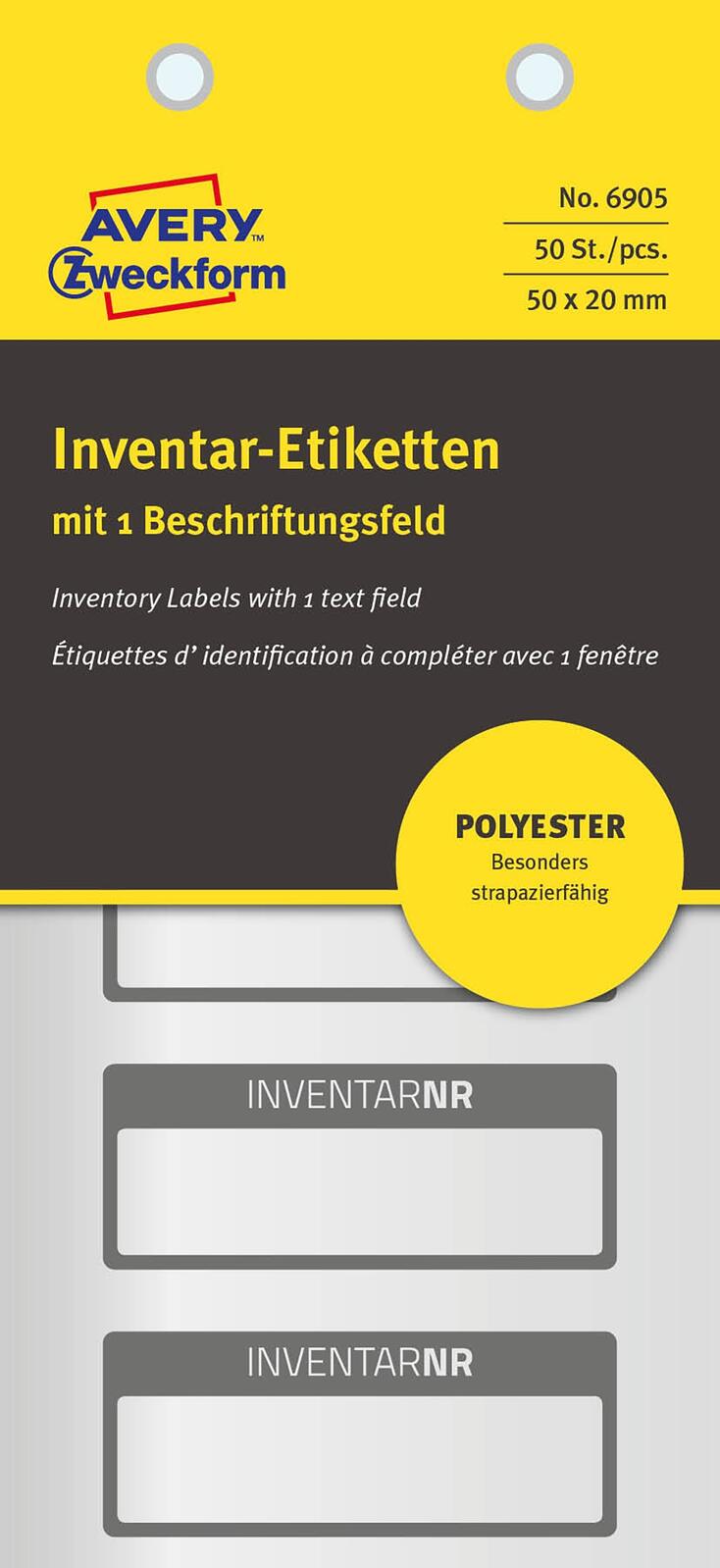 Die AVERY Zweckform Inventaretiketten in der Größe 50,0 x 20,0 mm sind die ideale Lösung für die Kennzeichnung von Eigentum und Inventar. Mit ihrem eleganten, matten Finish in klassischem Schwarz bieten diese Etiketten nicht nur eine ansprechende Optik, sondern auch hohe Funktionalität. Jedes Pack enthält 10 Blatt mit insgesamt 50 selbstklebenden Etiketten, die sich durch ihre abgerundeten Ecken auszeichnen und somit eine angenehme Handhabung gewährleisten. Hergestellt aus hochwertiger Polyester-Folie, sind diese Etiketten besonders langlebig und widerstandsfähig. Sie sind blickdicht, sodass der Inhalt nicht durchscheint, und lüften somit eine Vielzahl von Anwendungsmöglichkeiten, sei es im Büro, im Lager oder im privaten Bereich. Die Etiketten sind lösemittelfrei, was sie umweltfreundlicher macht und den Einsatz in sensiblen Bereichen wie Schulen oder Kindergärten ermöglicht. Die AVERY Zweckform Inventaretiketten sind leicht beschreibbar mit einem Kugelschreiber oder Folienstift, was dir erlaubt, wichtige Informationen klar und deutlich festzuhalten. Dank ihrer selbstklebenden Rückseite haften sie zuverlässig auf verschiedenen Oberflächen, was eine mühelose Anwendung garantiert. Die Anordnung auf dem Trägerpapier von 152,0 x 70,0 mm sorgt dafür, dass du die Etiketten problemlos abziehen und anbringen kannst. Ob zur Organisation von Büromaterialien, zur Kennzeichnung von Geräten oder zur Inventarisierung von Lagerbeständen – diese vielseitigen Etiketten sind die perfekte Wahl für jeden Bedarf. Mit den AVERY Zweckform Inventaretiketten bist du bestens ausgestattet, um dein Inventar professionell und übersichtlich zu kennzeichnen.Technische Daten