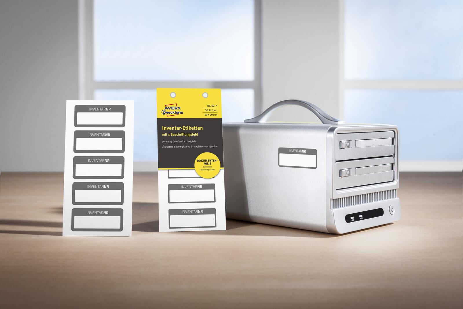 Die AVERY Zweckform Inventaretiketten in der Größe 50,0 x 20,0 mm sind die ideale Lösung für die Kennzeichnung von Eigentum und Inventar. Diese hochwertigen, selbstklebenden Etiketten bestehen aus robustem PVC und bieten eine matte Oberfläche, die das Beschriften mit einem Kugelschreiber oder Folienstift ermöglicht. Mit einem Packungsinhalt von 10 Blatt und insgesamt 50 Etiketten pro Packung sind sie perfekt für den häufigen Einsatz geeignet. Die rechteckige Form der Etiketten mit abgerundeten Ecken sorgt für ein ansprechendes Erscheinungsbild, während die schwarze Farbe einen klaren Kontrast zu den meisten Oberflächen bietet. Diese Etiketten sind nicht blickdicht, was bedeutet, dass sie auch für die Kennzeichnung von transparenten oder hellen Materialien verwendet werden können. Dank der selbstklebenden Eigenschaft haften sie zuverlässig auf verschiedenen Oberflächen, ohne dass eine Ablösehilfe benötigt wird. Die Anordnung auf dem Trägerpapier (152,0 x 70,0 mm) erleichtert das Handling und die Verwendung der Etiketten. Obwohl sie nicht temperaturbeständig sind und nicht ablösbar, zeichnen sie sich durch ihre Langlebigkeit und Stabilität aus. Die lösemittelfreie Materialart sorgt zudem dafür, dass sie umweltfreundlich sind. Egal, ob du deine Büroausstattung, Werkzeuge oder persönliche Gegenstände kennzeichnen möchtest, die AVERY Zweckform Inventaretiketten bieten dir eine praktische und ästhetische Lösung, die sich in jedem Umfeld bewährt.Technische Daten