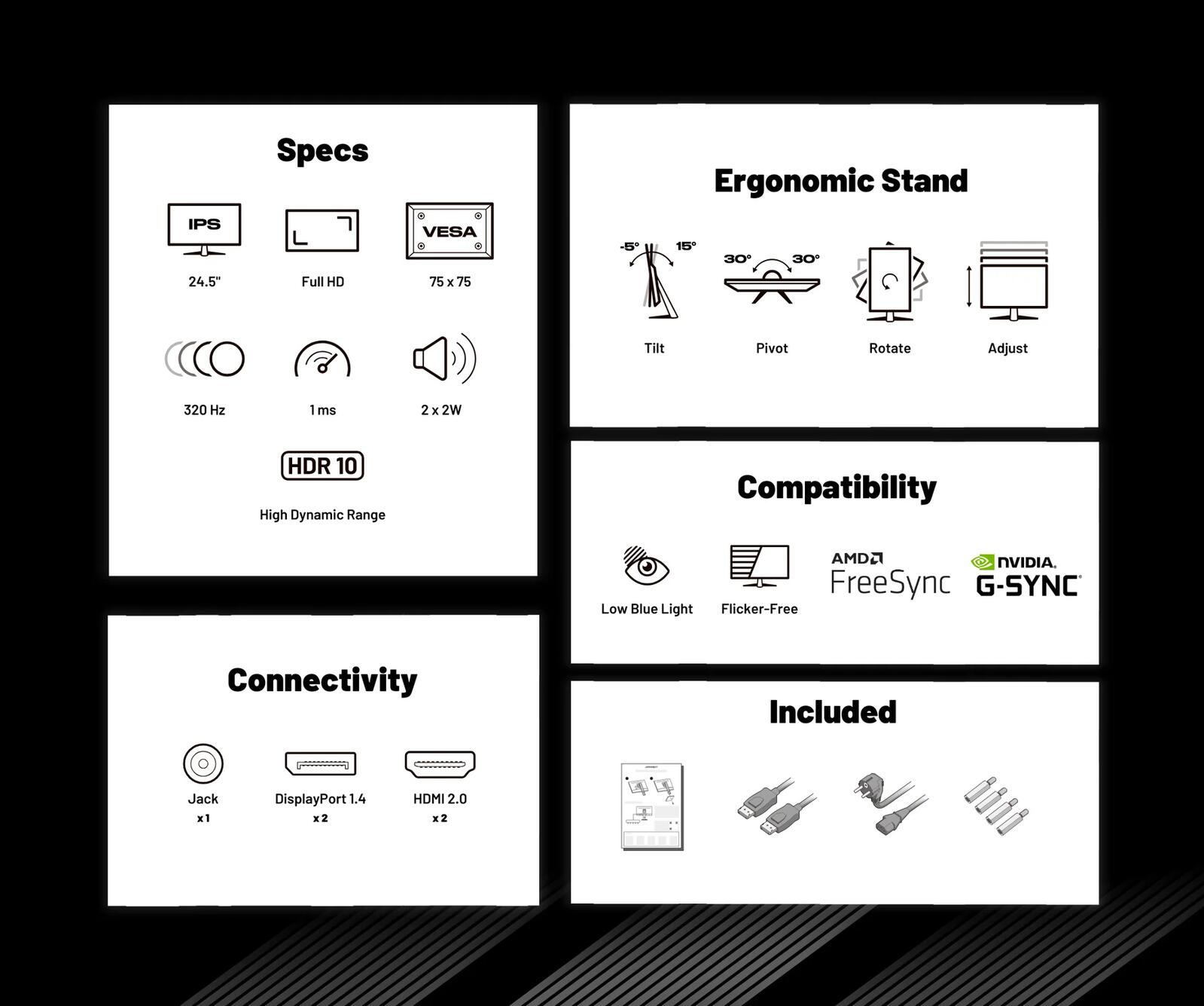 1920x1080 Pixel,IPS Panel, 1 ms, 320 Hz, AMD FreeSync, HDMI, DisplayPort