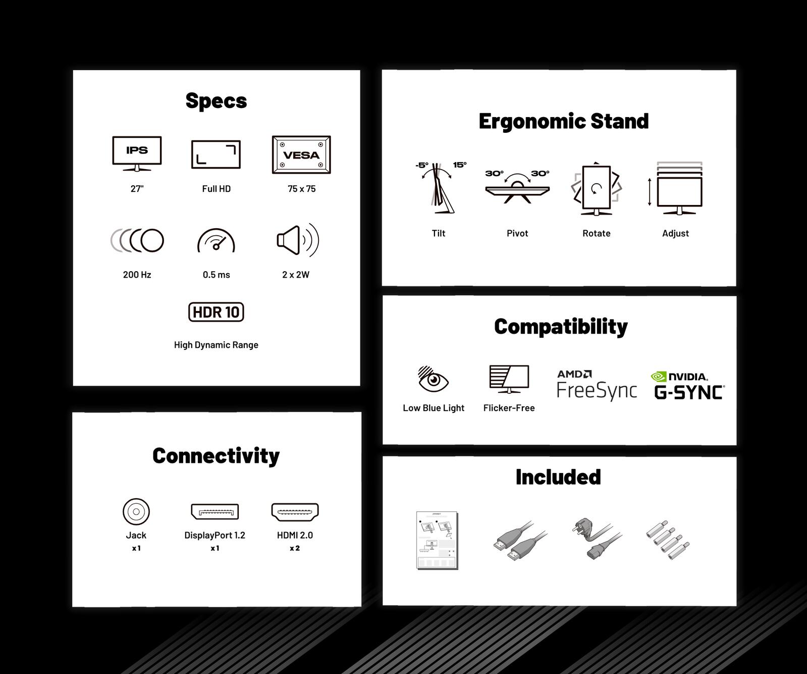 1920x1080 Pixel,IPS Panel, 0,5 ms, 200 Hz, AMD FreeSync, HDMI, DisplayPort