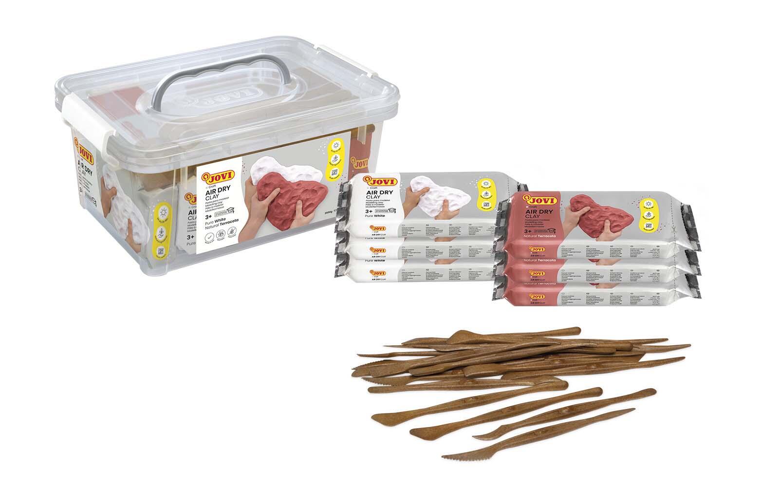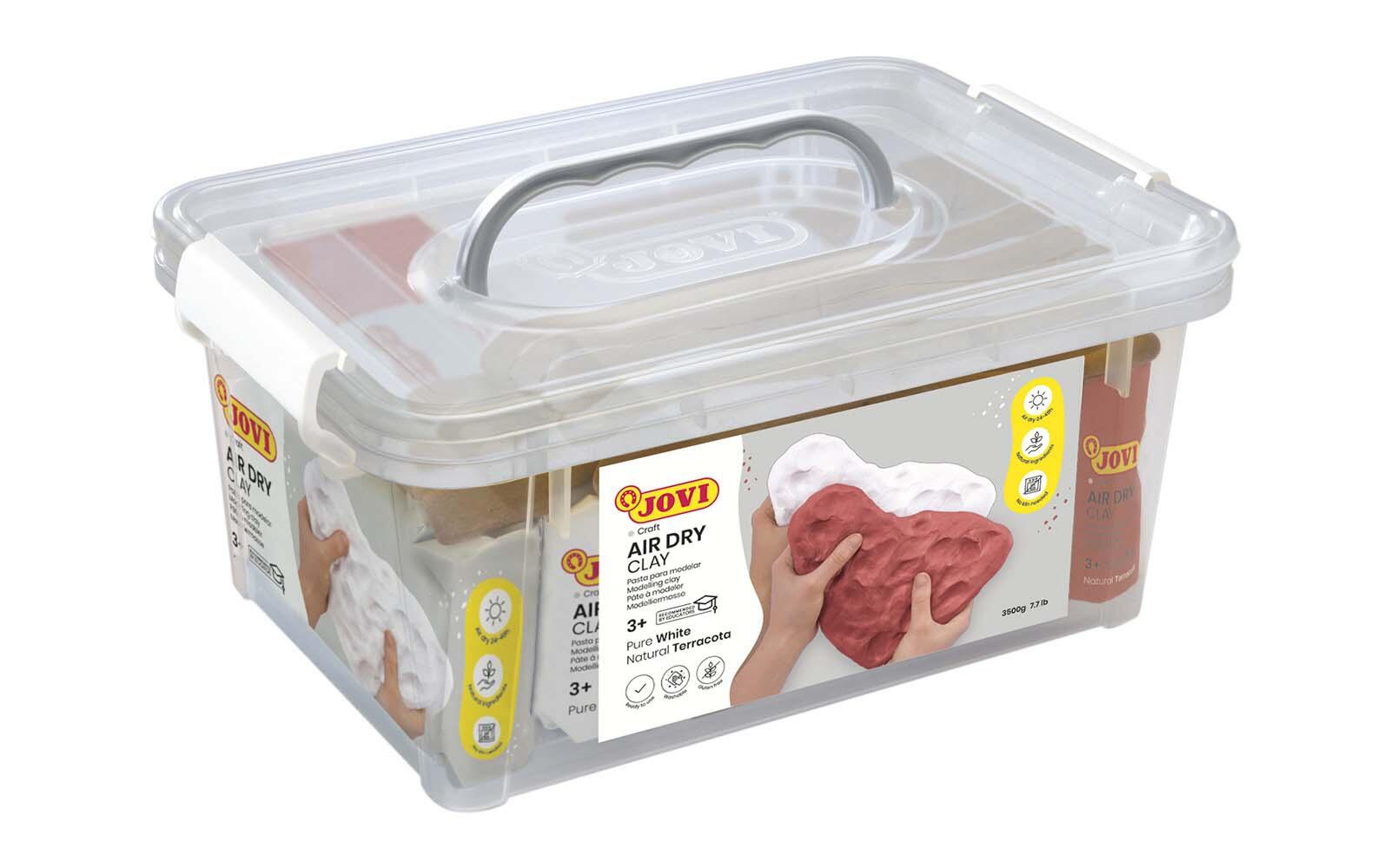 Die JOVI Modelliermasse in den ansprechenden Farben weiß und terrakotta ist die perfekte Wahl für kreative Köpfe, die ihre Ideen in die Realität umsetzen möchten. Mit einem Nettoinhalt von 500 Gramm bietet diese Modelliermasse ausreichend Material, um eine Vielzahl von Projekten zu gestalten. Die innovative Air Dry-Serie von JOVI ermöglicht es dir, die Masse einfach zu formen und nach dem Trocknen zu bemalen, was dir unbegrenzte kreative Möglichkeiten eröffnet. Dank der lufthärtenden Eigenschaften ist die Modelliermasse äußerst benutzerfreundlich und benötigt keine zusätzliche Wärmequelle zum Aushärten. Sie trocknet an der Luft und bleibt dabei leicht formbar, was dir die Freiheit gibt, deine Projekte ganz nach deinen Vorstellungen zu gestalten. Ob du Figuren, Schmuck, Deko-Objekte oder andere kreative Werke erschaffen möchtest, die JOVI Modelliermasse lässt sich mühelos verarbeiten und bietet dir die Flexibilität, die du benötigst. Ein weiterer Vorteil dieser Modelliermasse ist ihre Geruchsneutralität, die ein angenehmes Arbeiten ermöglicht. Du kannst dich ganz auf deine Kreativität konzentrieren, ohne von unangenehmen Gerüchen abgelenkt zu werden. Die Kombination aus den eleganten Farbtönen weiß und terrakotta eröffnet dir zudem eine breite Palette an Gestaltungsmöglichkeiten, die sowohl modern als auch zeitlos wirken. Die JOVI Modelliermasse ist ideal für Hobbykünstler, Kinder und alle, die Spaß am Modellieren haben. Sie eignet sich sowohl für den Einsatz in der Schule als auch für kreative Projekte zu Hause. Mit ihrer hohen Qualität und den benutzerfreundlichen Eigenschaften ist die JOVI Modelliermasse ein unverzichtbares Material für jeden kreativen Schaffensprozess. Entdecke die Freude am Modellieren und lasse deiner Fantasie freien Lauf!Technische Daten