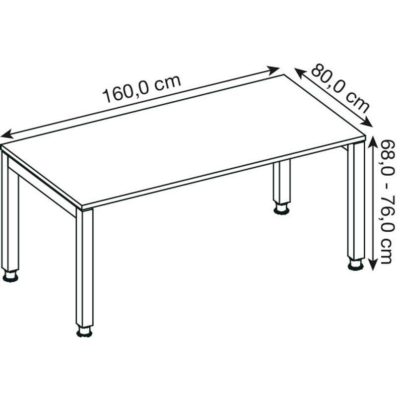 Die großzügigen Maße von 160 cm in der Breite und 80 cm in der Tiefe bieten ausreichend Platz für Ihre Büroausstattung, sei es für Computer, Notizen oder kreative Projekte. Mit einer Höhe von 68 cm lässt sich der Schreibtisch individuell anpassen, sodass Sie bequem im Sitzen oder Stehen arbeiten können. Diese Flexibilität fördert nicht nur die Ergonomie, sondern trägt auch zu einem gesünderen Arbeitsumfeld bei.