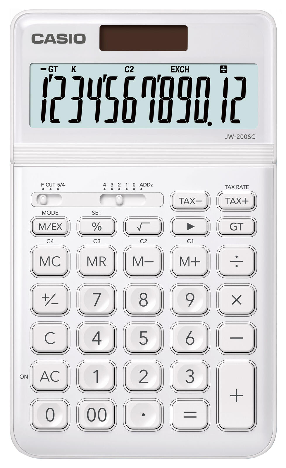 Der CASIO Tischrechner JW-200SC in elegantem Weiß ist die ideale Lösung für Ihre täglichen Rechenbedürfnisse, sei es im Büro oder zu Hause. Mit einer 12-stelligen Anzeige ermöglicht dieser Tischrechner eine klare und präzise Darstellung Ihrer Berechnungen. Die Farbgebung in Weiß und das hochwertige, farbige Metallgehäuse verleihen ihm ein modernes und ansprechendes Design, das sich nahtlos in jede Arbeitsumgebung einfügt. Der JW-200SC bietet eine flexible Betriebsart, die sowohl über Batterie als auch über Solarenergie funktioniert. Diese Dualität sorgt dafür, dass Sie sich keine Sorgen um leere Batterien machen müssen, während die Solarfunktion umweltfreundlich ist und Ihnen eine zuverlässige Nutzung garantiert. Der Tischrechner wird mit einer Knopfzelle LR54 geliefert, sodass Sie sofort mit Ihren Berechnungen beginnen können. Die Benutzerfreundlichkeit des CASIO Tischrechners wird durch seine intuitive Tastenanordnung und die klare Anzeige unterstützt. Egal, ob Sie einfache Additionen oder komplexe Berechnungen durchführen möchten, der JW-200SC ist mit seinen Funktionen bestens ausgestattet, um Ihnen das Leben zu erleichtern. Das kompakte und dennoch robuste Design macht ihn zudem zu einem idealen Begleiter für unterwegs. Entscheiden Sie sich für den CASIO Tischrechner JW-200SC in Weiß und erleben Sie eine Kombination aus Funktionalität, Stil und Zuverlässigkeit, die Ihren Anforderungen gerecht wird.Technische Daten