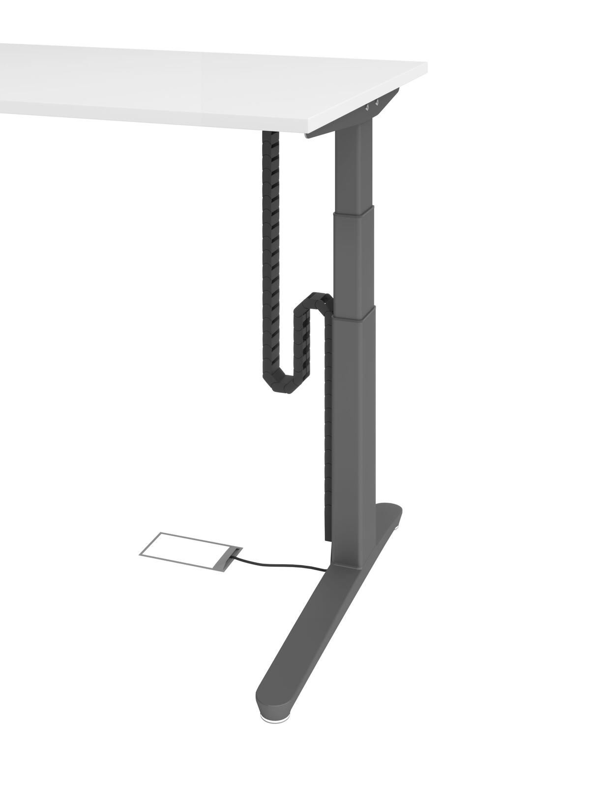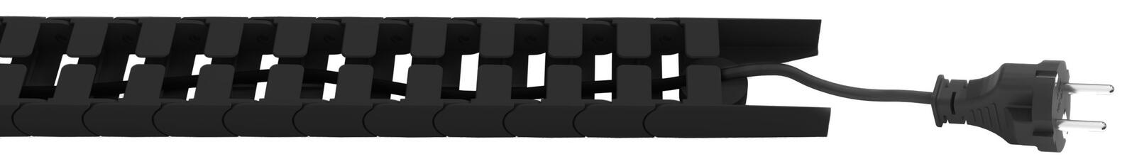 Die HAMMERBACHER Kabelkette in elegantem Schwarz ist die ideale Lösung für eine ordentliche und sichere Kabelführung in Deinem Büro oder Zuhause. Mit einer beeindruckenden Länge von 130 cm bietet sie ausreichend Platz, um eine Vielzahl von Kabeln ordentlich zu organisieren und zu verbergen. Das schlichte, schwarze Design fügt sich perfekt in jede Umgebung ein und sorgt für einen aufgeräumten Look. Hergestellt aus hochwertigem Kunststoff, ist die Kabelkette nicht nur robust, sondern auch leicht zu handhaben. Die Innenmaße für die Kabelführung betragen 3,7 cm in der Breite und 1,5 cm in der Tiefe, was bedeutet, dass sie für die meisten gängigen Kabeltypen geeignet ist. Egal, ob es sich um Stromkabel, Datenkabel oder andere Leitungen handelt, die HAMMERBACHER Kabelkette sorgt dafür, dass alles sicher und ordentlich verstaut ist. Ein weiterer Vorteil dieser Kabelkette ist die einfache Installation. Du kannst sie mühelos an der Wand oder unter dem Schreibtisch anbringen, wodurch sie sich ideal für den Einsatz in Büros oder Arbeitsbereichen eignet. Durch die Verwendung von Kunststoff ist die Kabelkette zudem leicht zu reinigen und behält auch nach längerer Nutzung ihr ansprechendes Aussehen. Die HAMMERBACHER Kabelkette ist nicht nur funktional, sondern trägt auch zur Sicherheit bei, indem sie Stolperfallen durch lose Kabel vermeidet. Mit dieser Kabelkette schaffst Du nicht nur Ordnung, sondern trägst auch zu einem angenehmeren und produktiveren Arbeitsumfeld bei. Vertraue auf die Qualität von HAMMERBACHER und erlebe die Vorteile einer durchdachten Kabelführung.Technische Daten