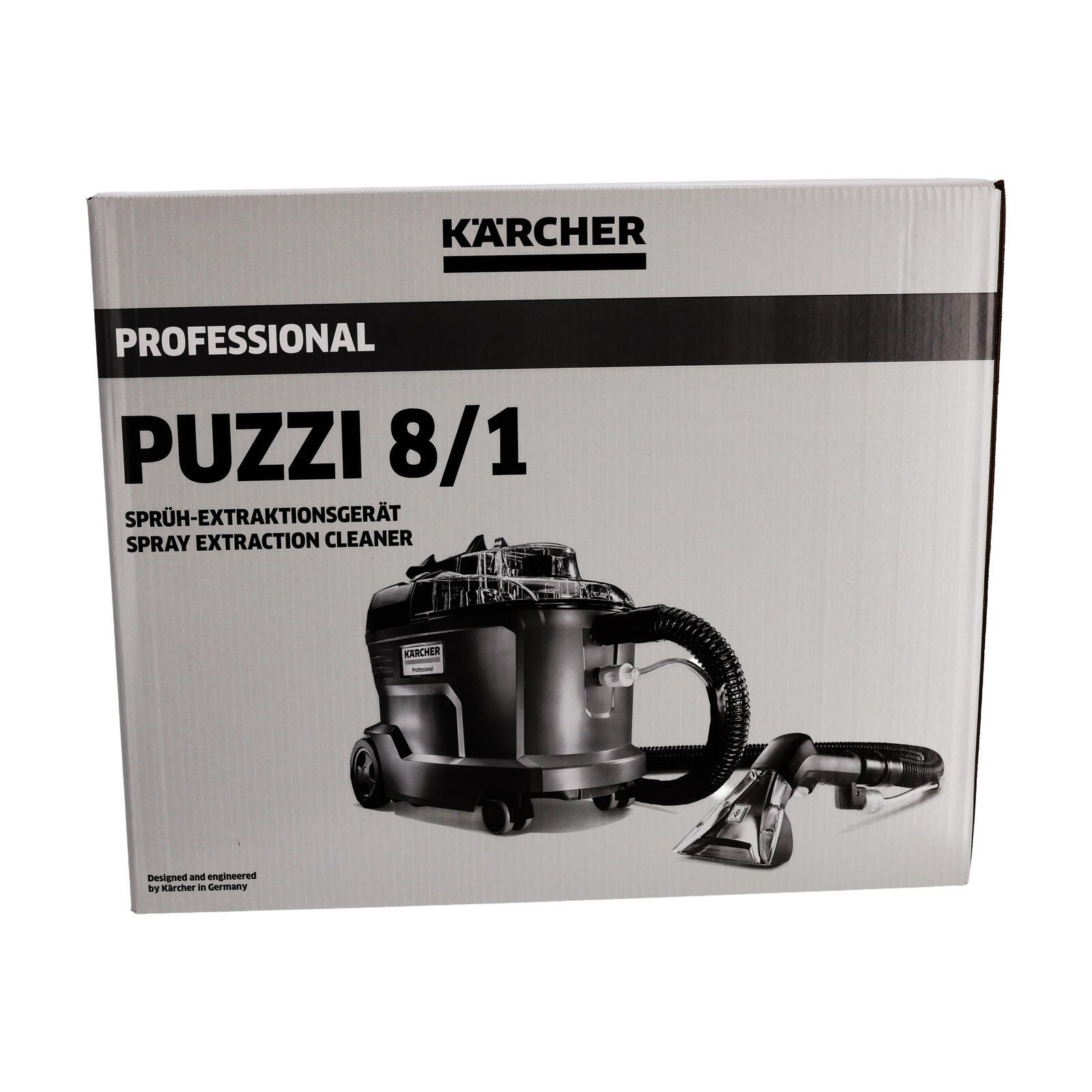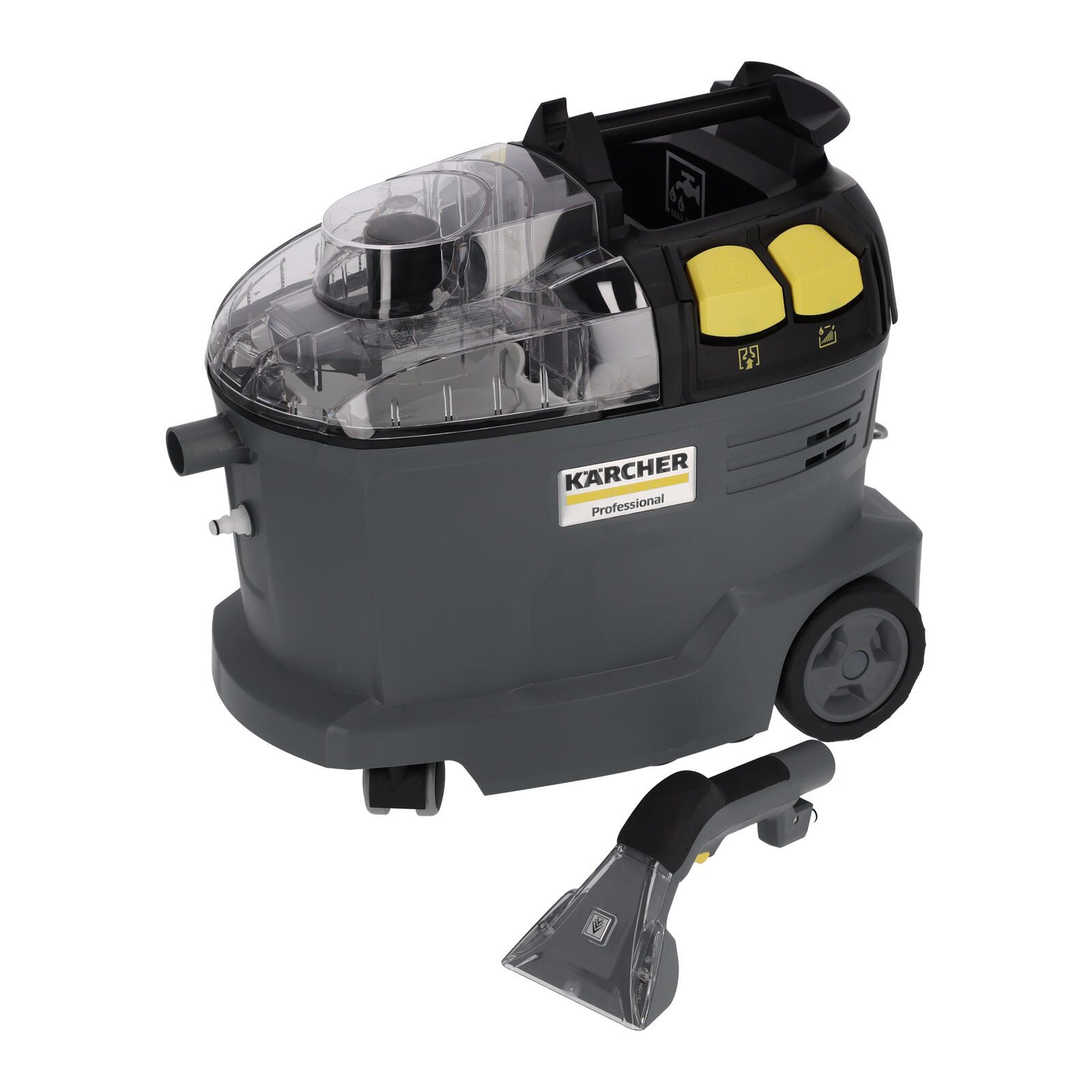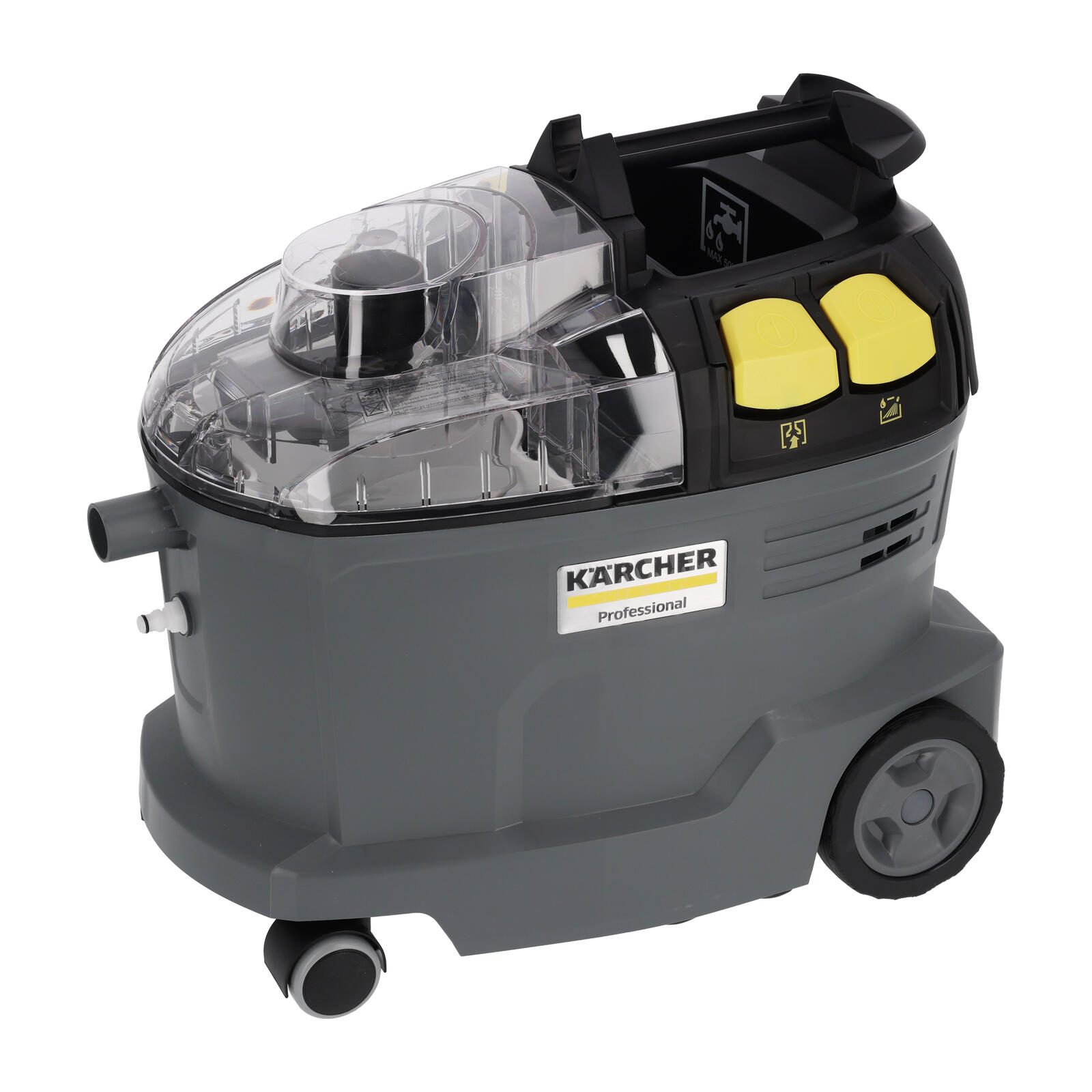 Robust, langlebig, effizient: Der Waschsauger Puzzi 8/1 von Kärcher überzeugt bei der Polsterreinigung und Fleckentfernung auf textilen Flächen mit herausragenden und hygienischen Reinigungsergebnissen und hoher Wirtschaftlichkeit. Dabei sprüht das kompakte Sprühextraktionsgerät die Reinigungslösung tief in die Textilfasern ein und saugt diese anschließend inklusive des gelösten Schmutzes wieder ab. Diese sehr gute Rücksaugleistung sorgt dazu auch für eine schnelle Trocknung und Wiederbegehbarkeit der textilen Flächen – ideal für die hohen Ansprüche von Reinigungsprofis im Hotel- und Gaststättengewerbe oder in der Fahrzeuginnenreinigung. Dazu passt auch die serienmäßige, extra kurze Polsterdüse zur komfortablen, ergonomischen Reinigung von engen Bereichen. Dank seines sehr geringen Gewichts und des ergonomischen Tragegriffs ist der Waschsauger problemlos einhändig zu transportieren. Große, per Hand oder Fuß bedienbare Drucktasten erhöhen dazu den Anwenderkomfort. Zur besseren Sicht auf die Schmutzflotte sind der Gerätedeckel sowie die Handdüse transparent gehalten.