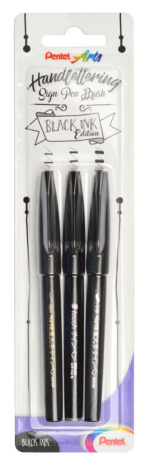Der Pentel Brush-Pen in Schwarz ist das ideale Werkzeug für kreative Köpfe, die ihre künstlerischen Fähigkeiten im Handlettering, in Illustrationen und Zeichnungen entfalten möchten. Mit seiner einzigartigen Pinselspitze ermöglicht dieser Brush-Pen eine präzise und flexible Strichführung, die sowohl feine als auch breite Linien mühelos erzeugt. Dank der drei unterschiedlichen Strichstärken – fein, mittel und breit – kannst du deinen individuellen Stil zum Ausdruck bringen und verschiedene Techniken ausprobieren. Die Schreibfarbe Schwarz sorgt für einen klaren und markanten Kontrast auf jedem Papier, wodurch deine Kunstwerke lebendig und ausdrucksstark wirken. Der Pentel Brush-Pen ist nicht nur funktional, sondern auch umweltbewusst gestaltet. Das Gehäuse besticht durch einen eleganten Metallic-Effekt und besteht zu 81% aus recyceltem Kunststoff, was ihn zu einer nachhaltigen Wahl für umweltbewusste Künstler macht. In einer praktischen Packung mit drei Stiften erhältst du die Vielseitigkeit, die du benötigst, um verschiedene Projekte zu realisieren. Ob du gerade erst mit dem Handlettering beginnst oder bereits Erfahrung hast, der Pentel Brush-Pen Schwarz wird dich mit seiner hohen Qualität und Benutzerfreundlichkeit überzeugen. Der runde Griff sorgt für eine angenehme Handhabung, sodass du stundenlang kreativ sein kannst, ohne dass deine Hand ermüdet. Entdecke die Möglichkeiten, die dir der Pentel Brush-Pen Schwarz bietet, und lasse deiner Kreativität freien Lauf. Dieser Brush-Pen ist ein unverzichtbares Werkzeug in jedem Künstlerbedarf und wird sicherlich zu deinem neuen Favoriten in der Sammlung.Technische Daten