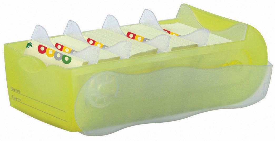Der HAN Croco Karteikasten in der auffälligen Farbe gelb vereint Funktionalität und ansprechendes Design. Hergestellt aus robustem Kunststoff, bietet dieser Karteikasten nicht nur eine hohe Langlebigkeit, sondern auch einen optimalen Schutz für deine wertvollen Karteikarten. Mit einem Fassungsvermögen von bis zu 500 Karteikarten ist er ideal für die Organisation und Aufbewahrung von Notizen, Lernkarten oder wichtigen Dokumenten im praktischen DIN A8 Format. Der transparente Deckel ermöglicht einen schnellen Überblick über den Inhalt, sodass du jederzeit sofort auf die benötigten Informationen zugreifen kannst. Der Karteikasten ist so konzipiert, dass er ohne Griffmulden auskommt, was ihm eine schlichte, elegante Optik verleiht. Die gelbe Farbe sorgt zudem für einen frischen Akzent in deinem Büro oder Lernbereich und bringt Freude in den Alltag. Ein weiterer Vorteil des HAN Croco Karteikastens ist seine Benutzerfreundlichkeit. Er ist leicht und handlich, was ihn zu einem perfekten Begleiter für Schule, Studium oder Beruf macht. Ob für das Lernen von Vokabeln, das Sammeln von Rezepten oder die Organisation von Projekten, dieser Karteikasten bietet dir die Flexibilität, die du benötigst. Mit dem HAN Croco Karteikasten hast du nicht nur eine praktische Aufbewahrungslösung, sondern auch ein stilvolles Accessoire, das sich harmonisch in jede Umgebung einfügt. Vertraue auf die Qualität von HAN und mache deine Unterlagen zu einem strukturierten und ansprechenden Teil deines Alltags.Technische Daten