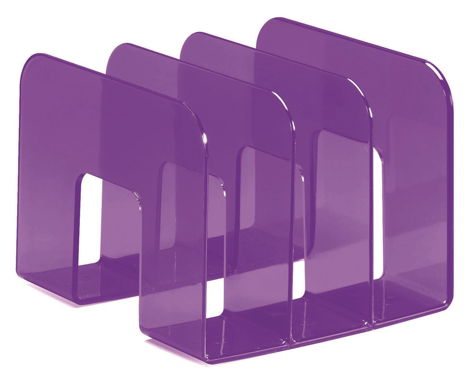 Der DURABLE TREND Katalogsammler ist die perfekte Lösung für die ordentliche und stilvolle Aufbewahrung deiner Kataloge und Dokumente. Mit seinen kompakten Maßen von 21,5 x 21,0 x 16,5 cm passt er mühelos in jedes Regal oder auf deinen Schreibtisch. Der Katalogsammler besteht aus hochglänzendem Kunststoff, der nicht nur robust, sondern auch leicht zu reinigen ist. Die attraktive lila-transparente Farbe verleiht deinem Arbeitsplatz einen modernen und frischen Look, während die hochwertige Verarbeitung für Langlebigkeit sorgt. Dieser Katalogsammler bietet dir drei Fächer mit jeweils 6,5 cm Höhe, die ausreichend Platz für deine Unterlagen bieten. Egal, ob du Broschüren, Flyer oder andere Dokumente aufbewahren möchtest, die strukturierte Anordnung ermöglicht dir einen schnellen Zugriff auf alles, was du benötigst. Die Fächer sind so gestaltet, dass sie deine Materialien sicher halten und gleichzeitig einen klaren Überblick bieten. Ein weiterer Vorteil des DURABLE TREND Katalogsammlers ist die praktische Verpackungseinheit von zwei Stück. So kannst du gleich mehrere Bereiche organisieren oder einen für dich und einen für deine Kollegen nutzen. Mit diesem Katalogsammler investierst du in ein funktionales und stilvolles Accessoire, das dir hilft, deine Unterlagen effizient zu verwalten und gleichzeitig einen ästhetischen Akzent in deinem Büro zu setzen. Die Kombination aus ansprechendem Design und durchdachter Funktionalität macht den DURABLE TREND Katalogsammler zu einem unverzichtbaren Helfer in deinem Arbeitsalltag. Erlebe die Vorteile einer organisierten Ablage und genieße die Ordnung, die dieser Katalogsammler mit sich bringt.Technische Daten