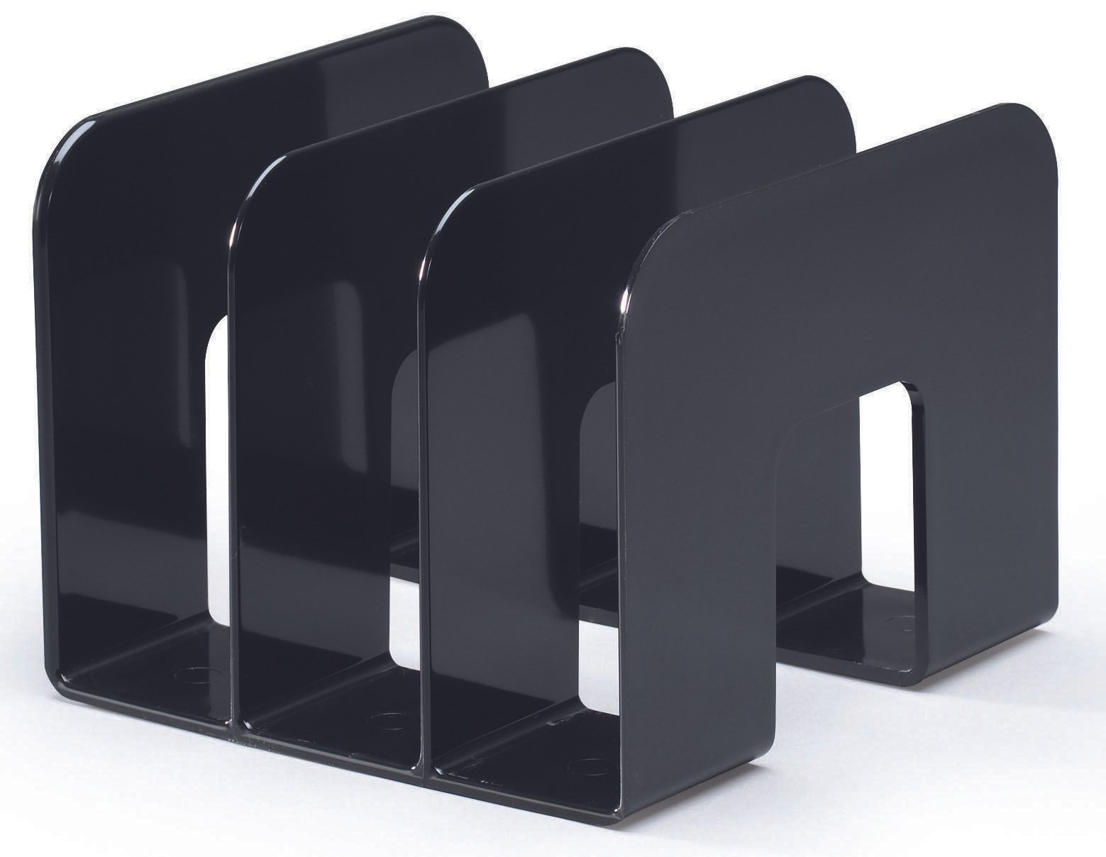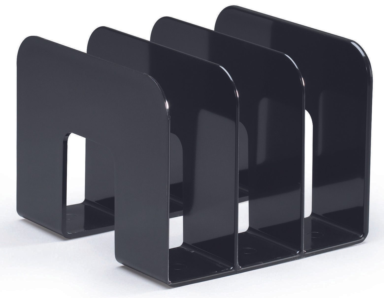 Der DURABLE TREND Katalogsammler ist die perfekte Lösung für die ordentliche und stilvolle Aufbewahrung deiner Kataloge und Unterlagen. Mit den kompakten Maßen von 21,5 x 21,0 x 16,5 cm bietet er ausreichend Platz für deine Dokumente, ohne dabei viel Platz auf dem Schreibtisch einzunehmen. Der elegante Katalogsammler in klassischem Schwarz fügt sich nahtlos in jedes Büro- oder Wohnambiente ein und sorgt für einen aufgeräumten Eindruck. Hergestellt aus hochglänzendem Kunststoff, überzeugt der Katalogsammler nicht nur durch seine ansprechende Optik, sondern auch durch seine Langlebigkeit und Robustheit. Die hochwertige Verarbeitung garantiert, dass deine Unterlagen stets gut geschützt und ansprechend präsentiert werden. Mit drei Fächern à 6,5 cm bietet der Katalogsammler ausreichend Platz zur Trennung und Organisation deiner Kataloge, Broschüren oder anderer wichtiger Dokumente. So behältst du jederzeit den Überblick und kannst schnell auf die benötigten Informationen zugreifen. Der DURABLE TREND Katalogsammler wird in einem praktischen Pack von zwei Stück geliefert, was ihn zu einer idealen Wahl für alle macht, die mehrere Bereiche organisieren möchten. Egal, ob im Büro, im Homeoffice oder zu Hause – dieser Katalogsammler ist vielseitig einsetzbar und erfüllt höchste Ansprüche an Funktionalität und Design. Setze auf Qualität und Stil mit dem DURABLE TREND Katalogsammler und bringe Ordnung in deine Unterlagen.Technische Daten