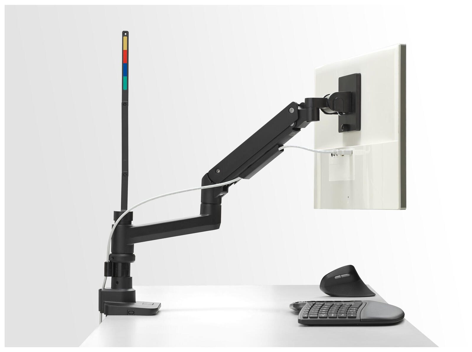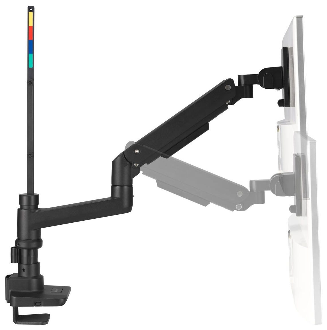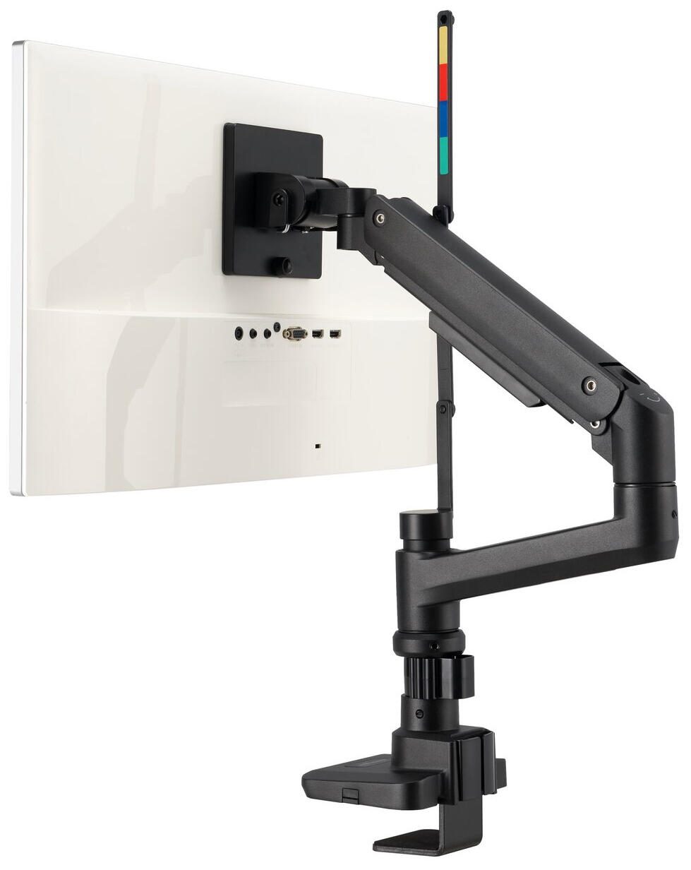 Die Halterung ist in einem schlichten schwarzen Farbton gehalten, der sich unauffällig in verschiedene Arbeitsumgebungen einfügt. Eine flexible Höhenverstellung ermöglicht es, den Monitor bis zu 48,1 Zentimeter in der Höhe anzupassen. So kannst Du die Bildschirmposition ergonomisch optimieren und für eine angenehme Sitzhaltung sorgen.