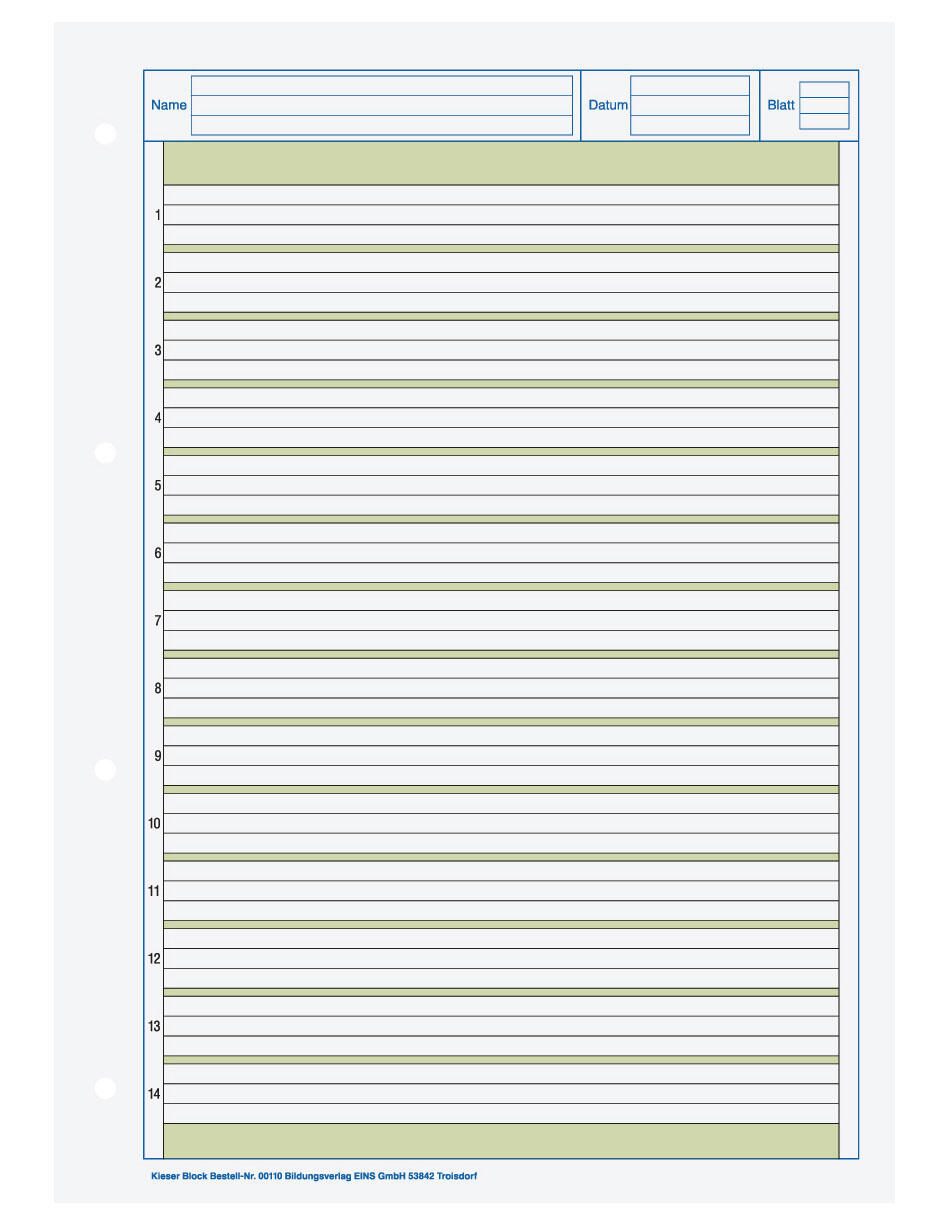 - Ausführung der Lineatur: liniert