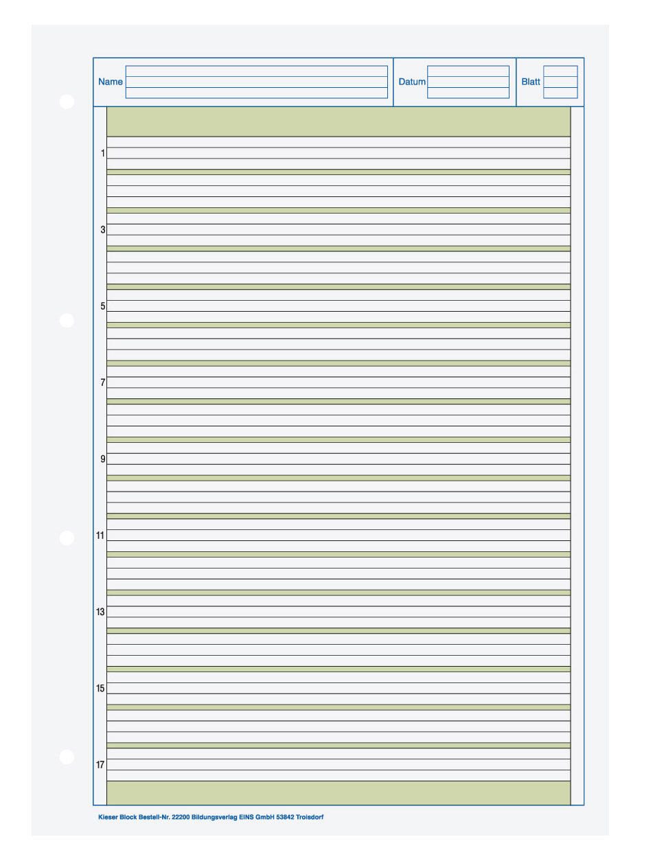 Der BRUNNEN Arbeitsblock DIN A4 liniert ist der ideale Begleiter für Schule, Studium und Büro. Mit seinen 50 Blatt bietet er ausreichend Platz für Notizen, Skizzen und kreative Ideen. Das hochwertige Papier mit einem Gewicht von 80 g/m² sorgt für ein angenehmes Schreibgefühl und verhindert ein Durchdrücken der Tinte, sodass deine Notizen stets klar und leserlich bleiben. Die flexible Bindung ermöglicht es dir, die Seiten mühelos umzublättern und den Block in verschiedenen Positionen zu nutzen. Der rundum verlaufende Rand sorgt dafür, dass deine Notizen stets ordentlich und strukturiert wirken. Das liniert Design bietet dir eine klare Orientierung beim Schreiben, was die Übersichtlichkeit deiner Gedanken und Informationen erhöht. Mit einem klassischen DIN A4 Format passt der Arbeitsblock perfekt in jede Aktentasche oder jeden Rucksack und ist somit ideal für unterwegs. Das weiße Papier ist holzfrei und wurde elementar chlorfrei gebleicht (ECF), was nicht nur umweltfreundlich ist, sondern auch für eine hohe Qualität sorgt. Die 4-fach-Lochung ermöglicht eine einfache Ablage in Ordnern, sodass du deine Arbeit stets organisiert und griffbereit hast. Dieser Arbeitsblock ist nicht nur funktional, sondern auch vielseitig einsetzbar, egal ob für Schulaufgaben, berufliche Notizen oder kreative Projekte. Entscheide dich für den BRUNNEN Arbeitsblock DIN A4 liniert und erlebe die Kombination aus Qualität und praktischer Handhabung.Technische Daten