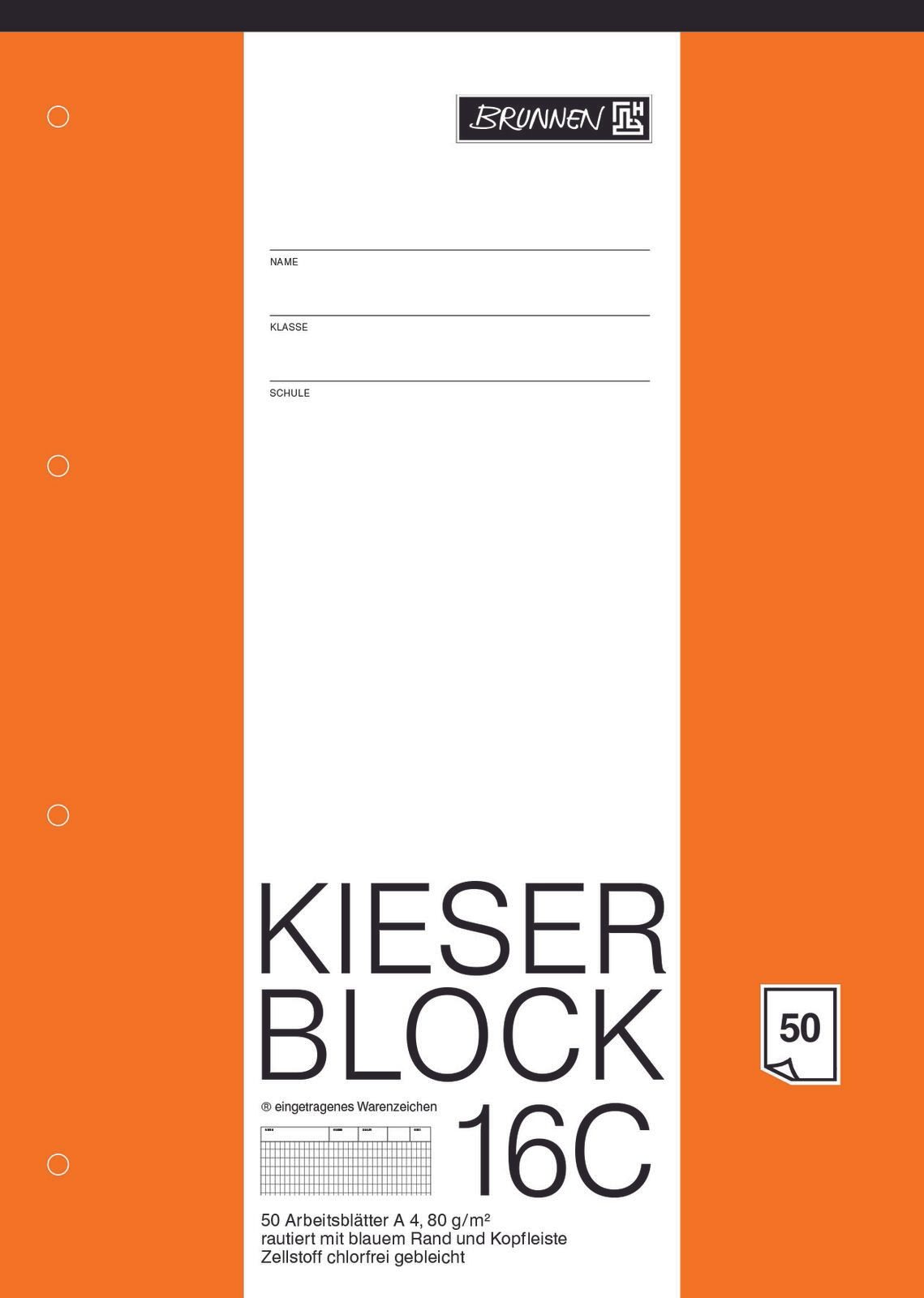 Hersteller des Kieserblocks ist BRUNNEN, ein renommiertes Unternehmen im Bereich Schreibwaren. Der Block ist holzfrei und umweltfreundlich hergestellt. Außerdem verfügt er über eine 4-fach-Lochung, die eine einfache Aufbewahrung in Ordnern ermöglicht.