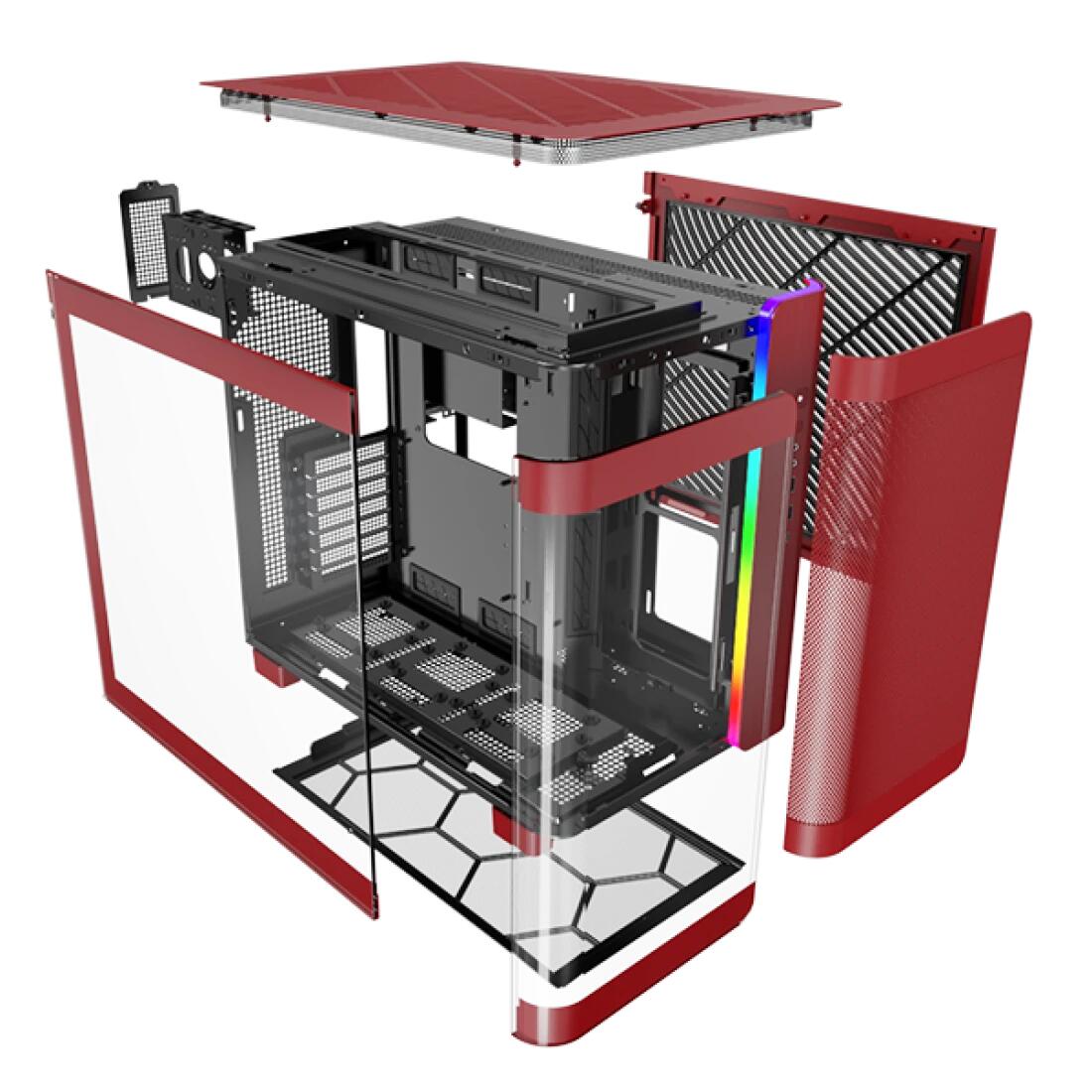 Montech PC Gehäuse King 95 Mid-Tower Rot ATX/Micro ATX/Mini-ITX, gebogenes Glas, seitliche Lüfterhalterung