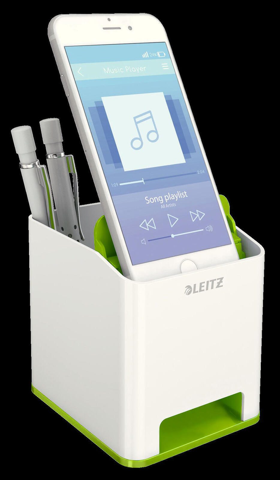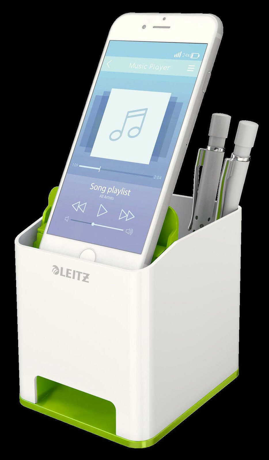 Das Besondere an diesem LEITZ Stiftehalter ist das integrierte Smartphone-Fach, das dir ermöglicht, dein Mobiltelefon immer in Sichtweite zu haben. So kannst du wichtige Anrufe oder Nachrichten auch während deiner Arbeit leicht im Blick behalten, ohne lange danach suchen zu müssen.