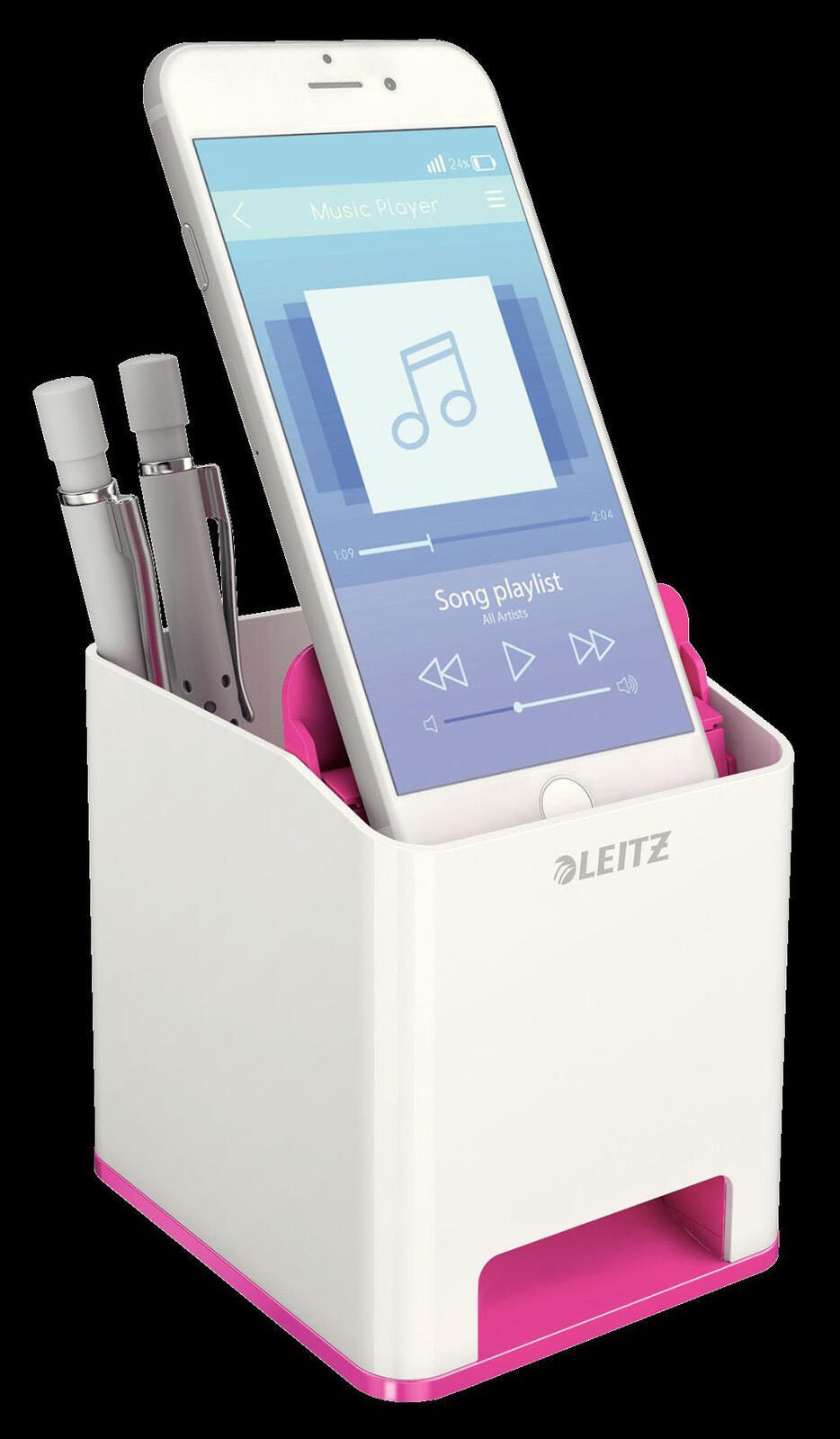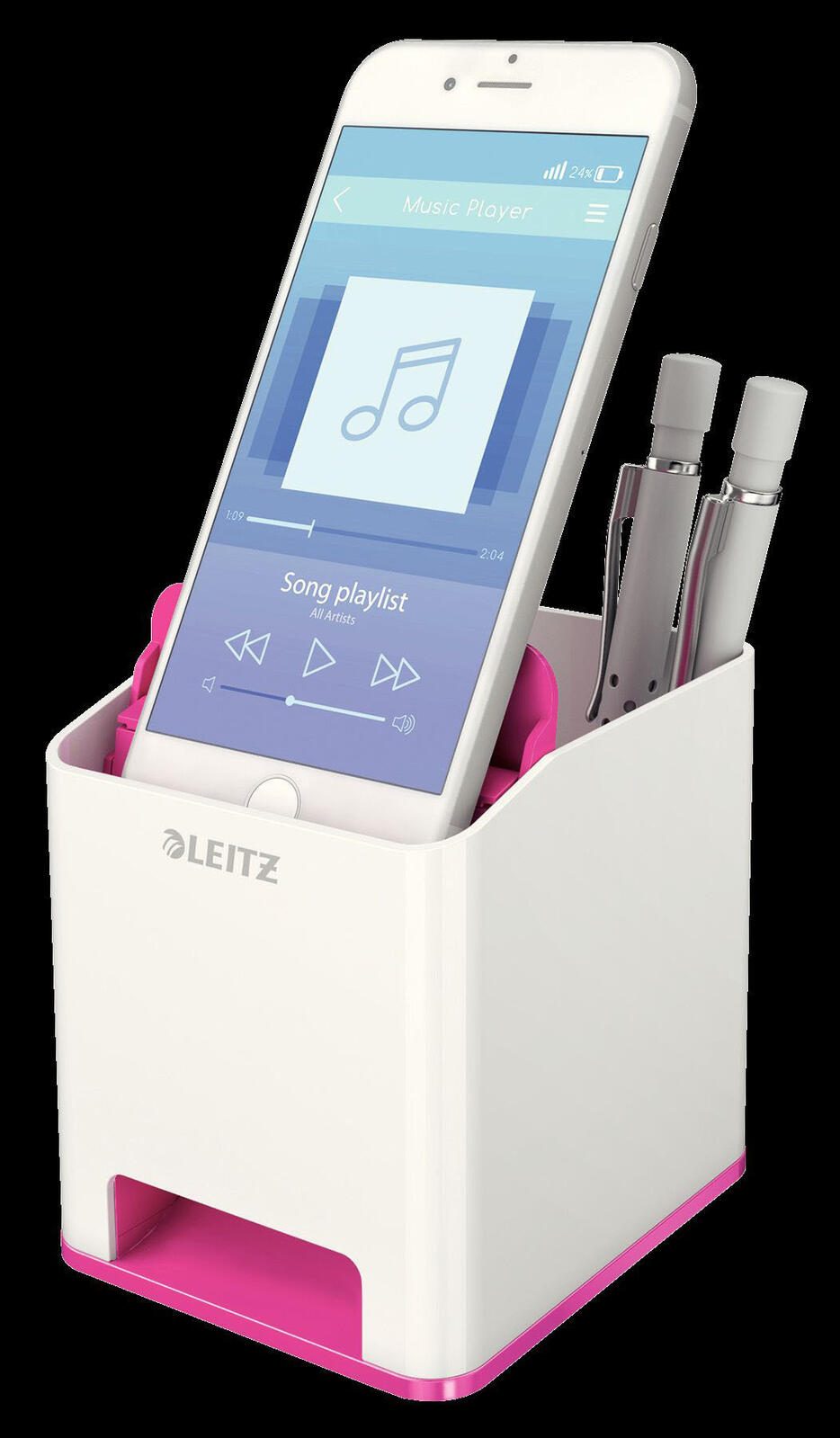 Der LEITZ Stiftehalter Köcher WOW Duo Colour pink ist ein Must-Have für alle, die Wert auf Ordnung, Stil und praktische Accessoires legen. Mit diesem Köcher hast du nicht nur deine Schreibutensilien stets griffbereit, sondern auch die Möglichkeit, dein Smartphone gut im Blick zu behalten.