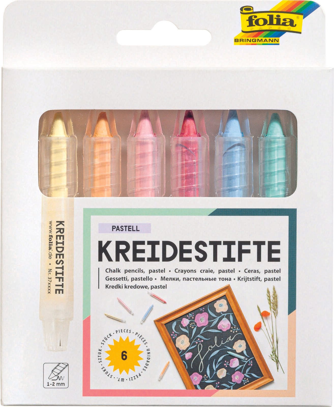 Die folia Kreidestifte Mehrfarbig sind die perfekte Wahl für kreative Köpfe und Kunstliebhaber. Mit ihrer runden Form und den sanften, pastellfarbenen Tönen eignen sie sich hervorragend für eine Vielzahl von Anwendungen, sei es für das Beschriften von Tafeln, das Erstellen von Kunstwerken oder das Dekorieren von Karten und Einladungen. Diese Kreidestifte bieten eine breite Palette an Farben, darunter hellgelb, hellorange, hellrosa, hellrot, hellblau und hellmintgrün, die deinen Projekten einen fröhlichen und lebendigen Touch verleihen. Jede Packung enthält sechs Stifte, die in einem praktischen Karton-Etui verpackt sind. Diese durchdachte Verpackung ermöglicht eine einfache Aufbewahrung und einen schnellen Zugriff, sodass du immer bereit bist, deine kreativen Ideen umzusetzen. Die Kreidestifte sind besonders benutzerfreundlich und lassen sich leicht auf verschiedenen Oberflächen anwenden. Sie hinterlassen lebendige, gut sichtbare Farben, die sich ideal für den Einsatz auf Tafeln oder in der Schule eignen. Die folia Kreidestifte sind nicht nur vielseitig, sondern auch von hoher Qualität, was sie zu einem unverzichtbaren Werkzeug für jeden Künstler oder Lehrer macht. Ihre Mehrfarbigkeit und die sanften Farbtöne ermöglichen es dir, deine Kreativität voll auszuleben und einzigartige Designs zu kreieren. Egal, ob du für den Unterricht vorbereitest, ein Kunstprojekt startest oder einfach nur Spaß am Zeichnen hast, diese Kreidestifte werden dich nicht enttäuschen. Mit den folia Kreidestiften Mehrfarbig bringst du Farbe in dein Leben und schaffst beeindruckende Werke, die sowohl Spaß machen als auch inspirieren.Technische Daten
