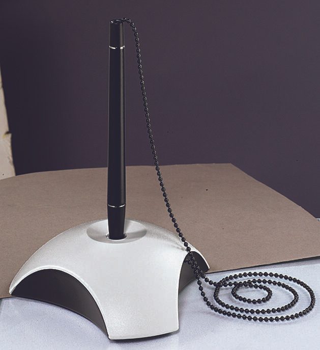 Der Kugelschreiberständer Delta wird in den Farben grau und schwarz geliefert, was ihm ein modernes und ansprechendes Aussehen verleiht. Die antistatische und schwermetallfreie Polystyrolkonstruktion garantiert Langlebigkeit und Stabilität.