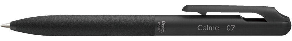 Das Gehäuse des Kugelschreibers ist in elegantem Schwarz gehalten, was ihm ein zeitloses und professionelles Aussehen verleiht. Die enthaltene Mine vom Typ Pentel BXM7H-AX sorgt für ein angenehmes und durchgehend klares Schriftbild in klassischem Schwarz.