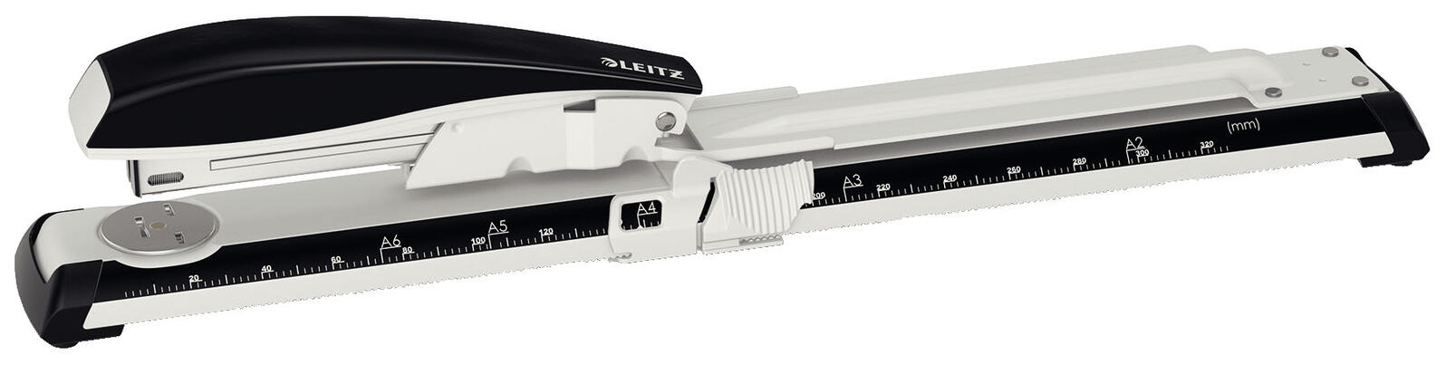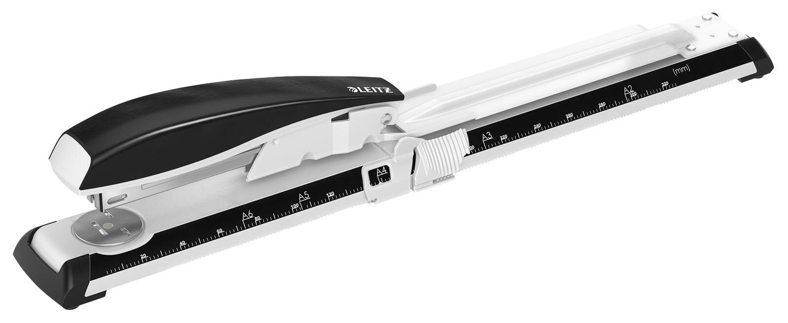 Das schwarze Langarm-Heftgerät aus der NeXXt Series von LEITZ ist ein unverzichtbares Arbeitswerkzeug für zuverlässiges und müheloses Heften im Büro oder Zuhause.