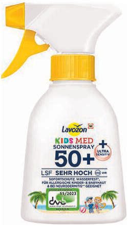 Das Lavozon Sonnenspray LSF 50+ Sehr Hoch Kids MED bietet einen sehr hohen Schutz vor schädlichen UV-Strahlen und ist speziell für die empfindliche Haut von Kindern entwickelt worden. Mit einem Lichtschutzfaktor von 50+ schützt es effektiv vor Sonnenbrand und UV-bedingten Hautschäden. Die Formulierung ist wasserfest, sodass der Schutz auch beim Schwimmen oder Schwitzen erhalten bleibt.
